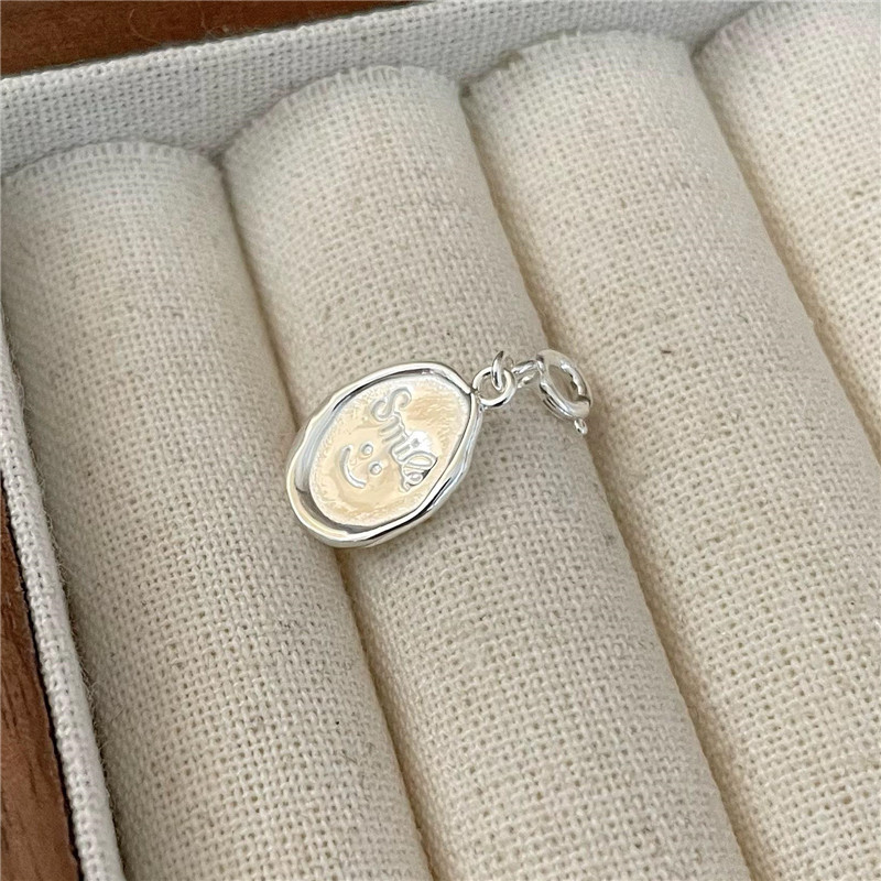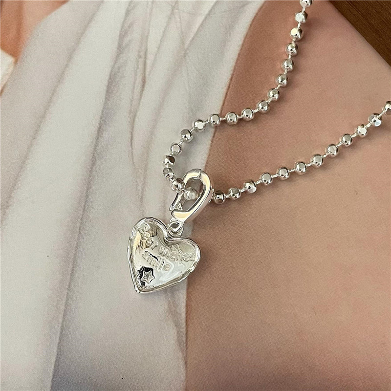 S925 pure silver Korean version niche design white silver fashionable pendant, simple and stylish heart-shaped letter side pendant