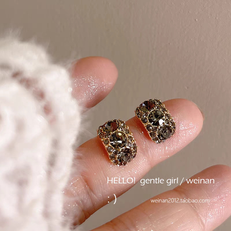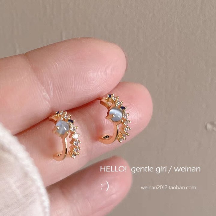 12# bluish-gray full-diamond C-shaped ear studs