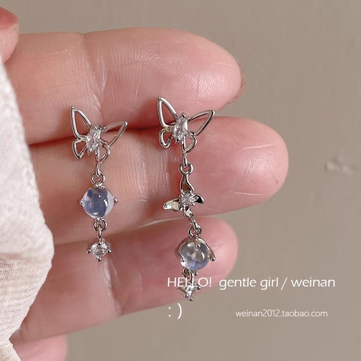 59# Colored zirconium-inlaid butterfly stud earrings