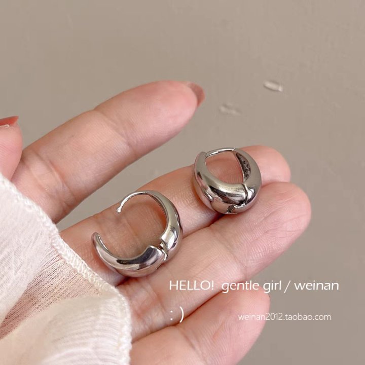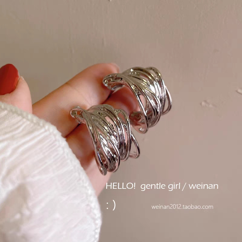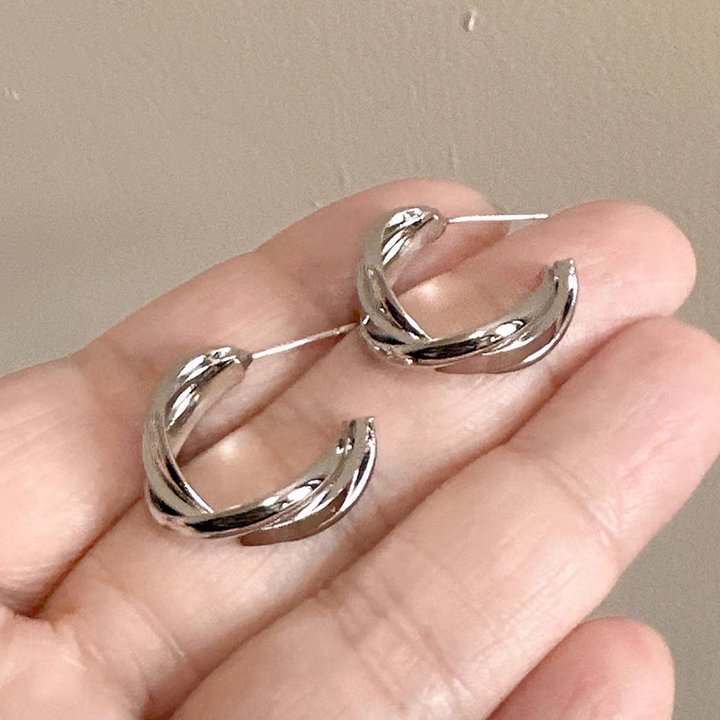 6# Silver metal wound C-shaped ear studs