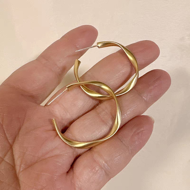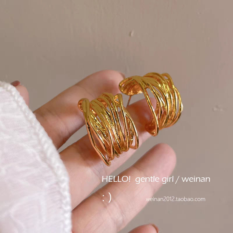 7# Golden metal wound C-shaped ear studs
