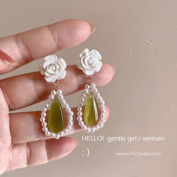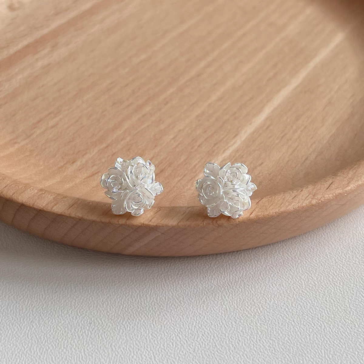 62# White camellia ear stud
