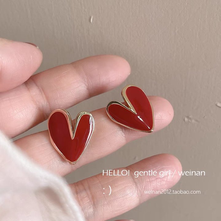 42# Red heart-shaped stud earrings