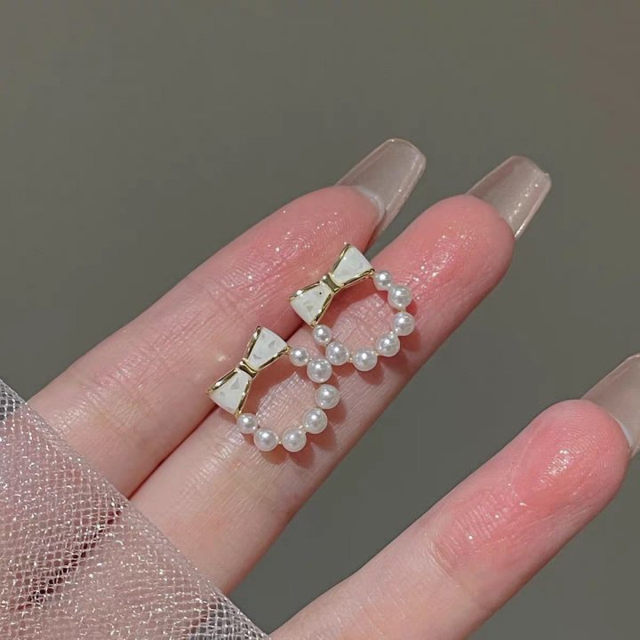 73# Pearl round bow stud earrings
