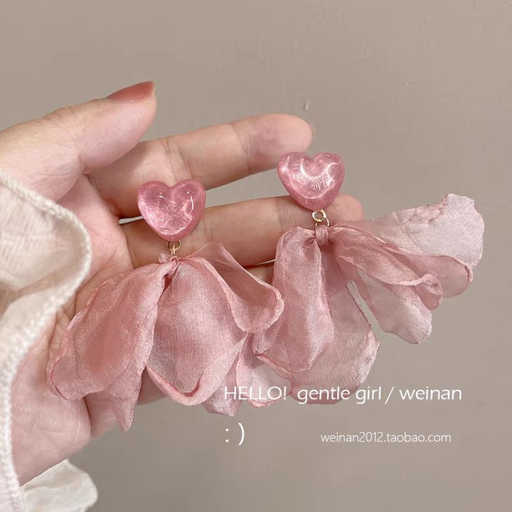 9# Pink heart-shaped petal stud earrings