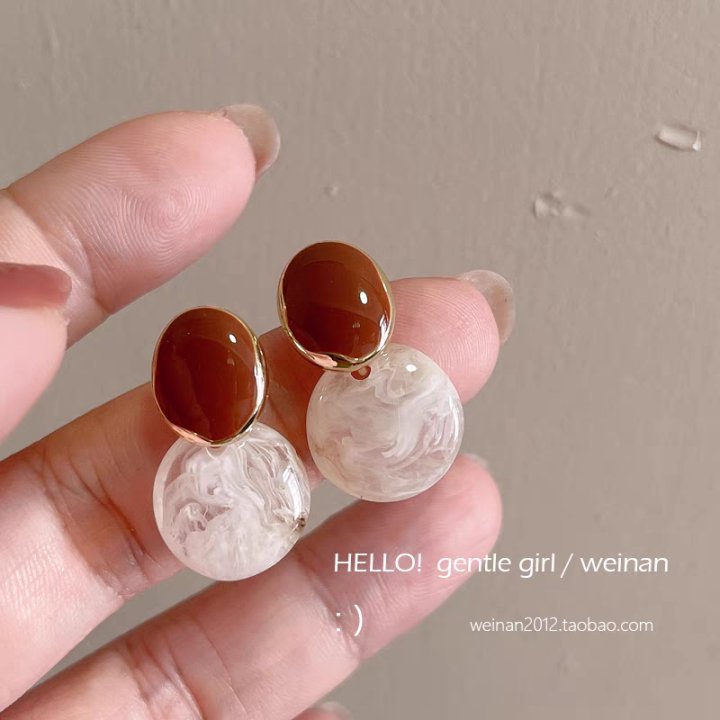 30# Warm Brown retro color-blocked stud earrings