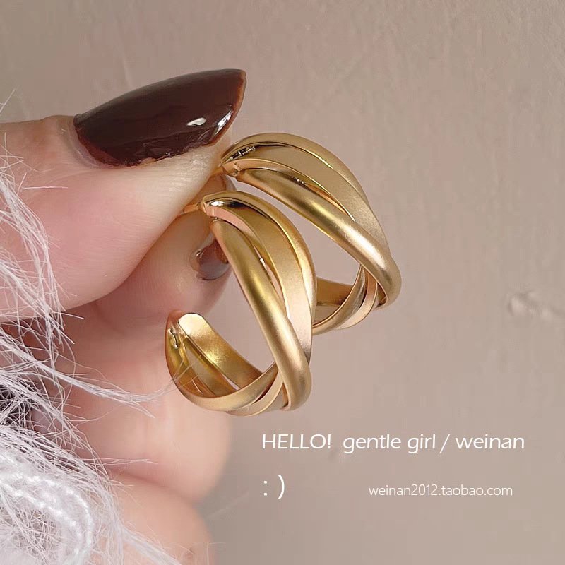 23# Matte gold three-strand twisted coil C ring
