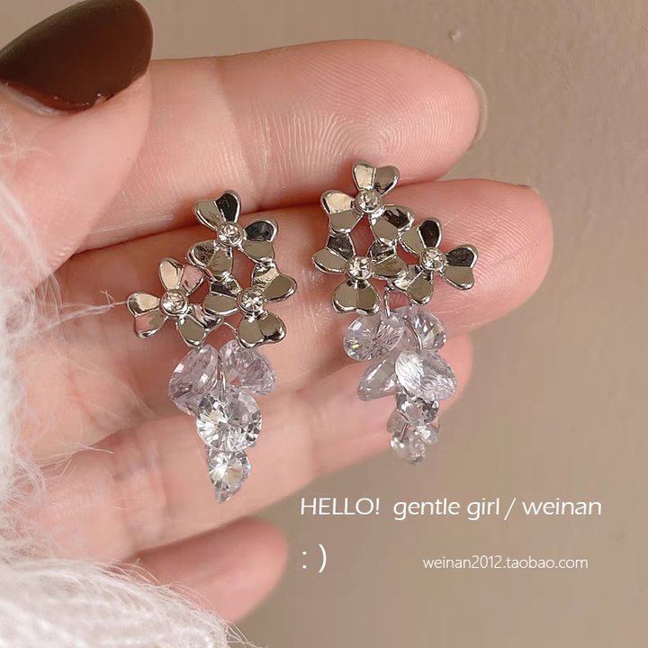 33# Small Flower crystal tassel stud earrings