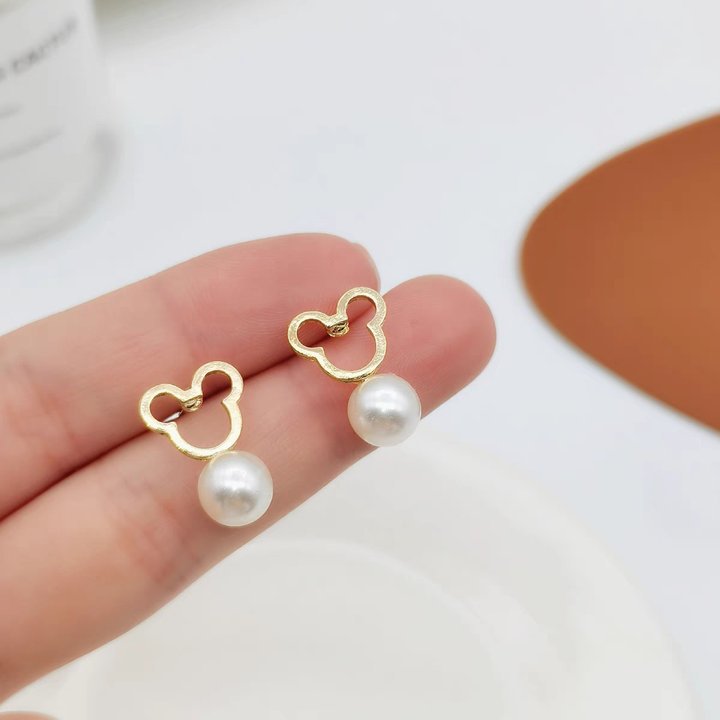68# Little Bear Pearl Stud Earrings