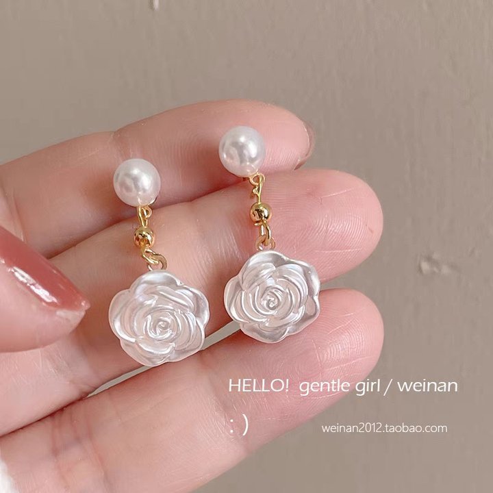 28# Pearlescent white rose pearl stud earrings
