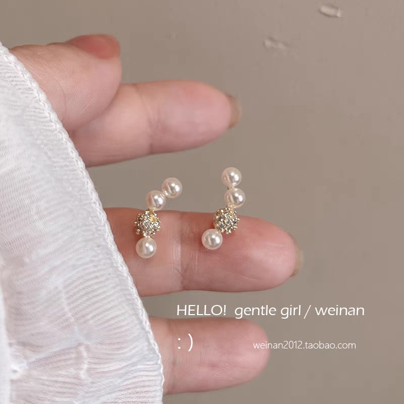 15# Micro-inlaid zircon pearl stud earrings