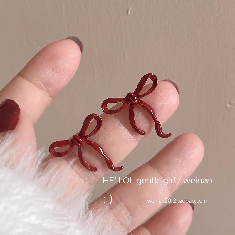 45# Ankela Red Ribbon Bow stud earrings
