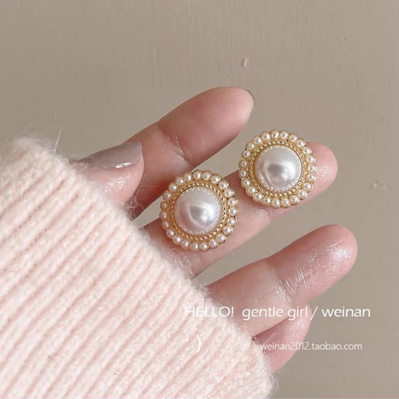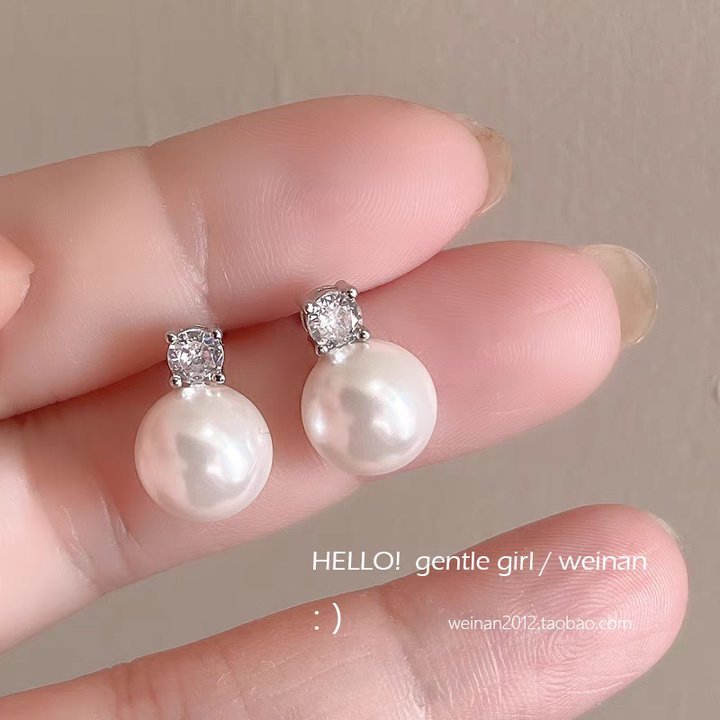 58# One-piece large pearl stud earrings