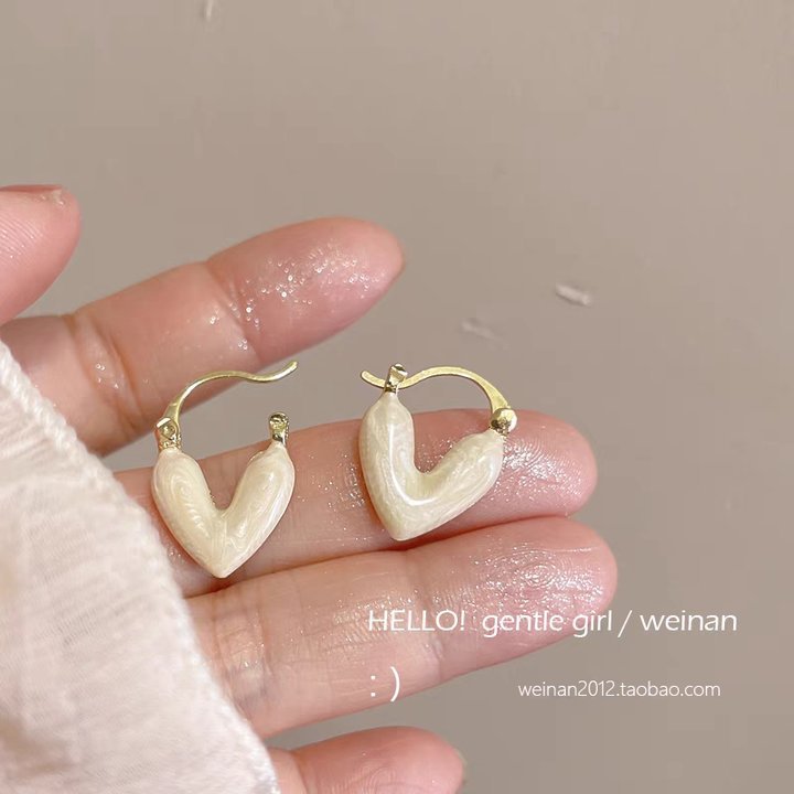 21# White oil-dripping heart-shaped stud earrings