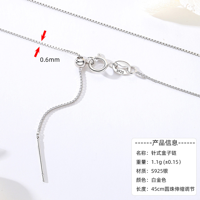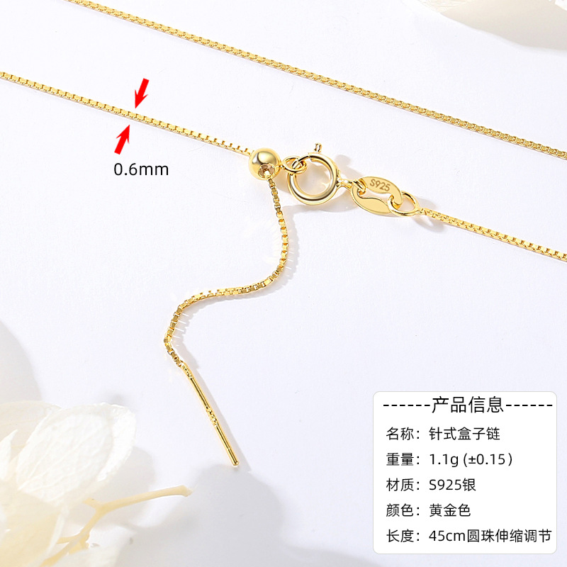 S925 sterling silver necklace, melon seed chain, small gold coin box, melon seed bare chain, single chain, 40+5 extension chain wholesale