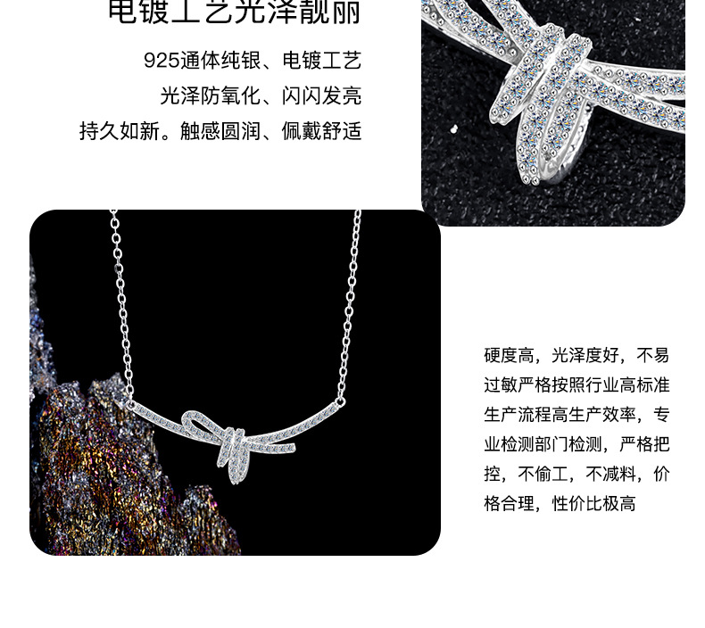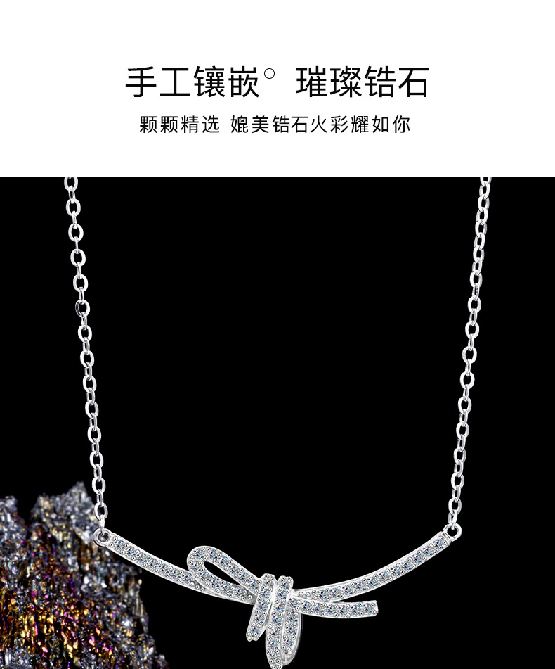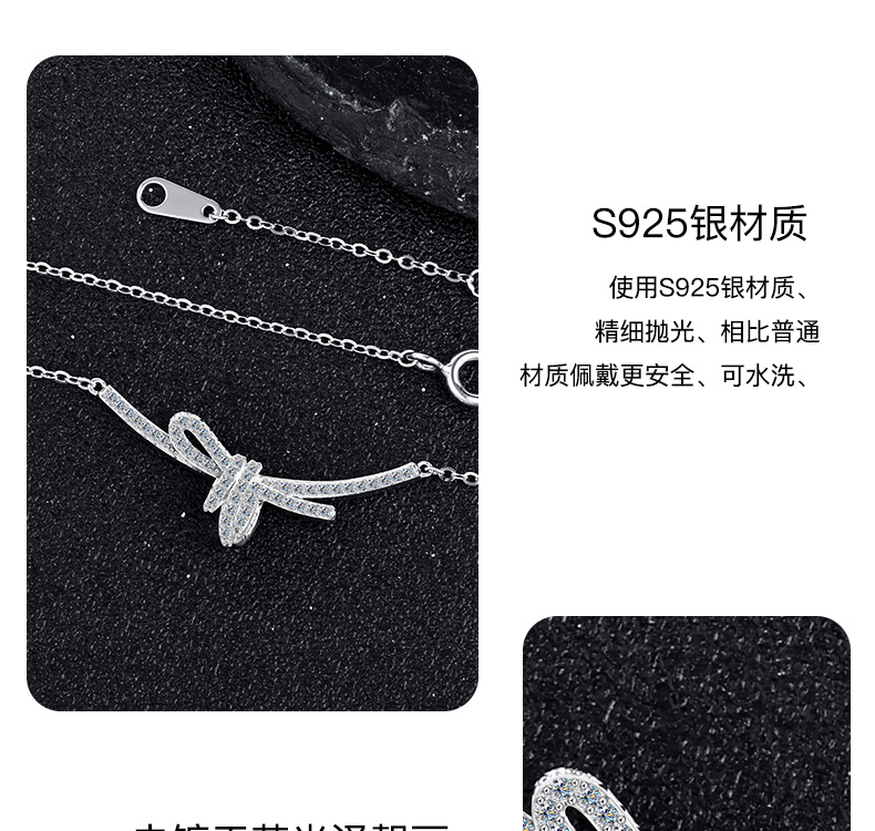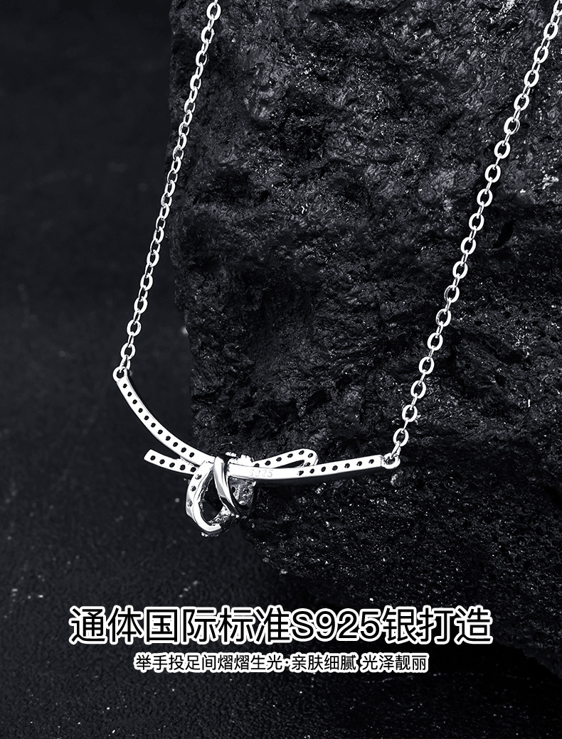 S925 sterling silver ribbon knot collarbone chain women's bow necklace, light luxury style design, high-end pendant sweater chain