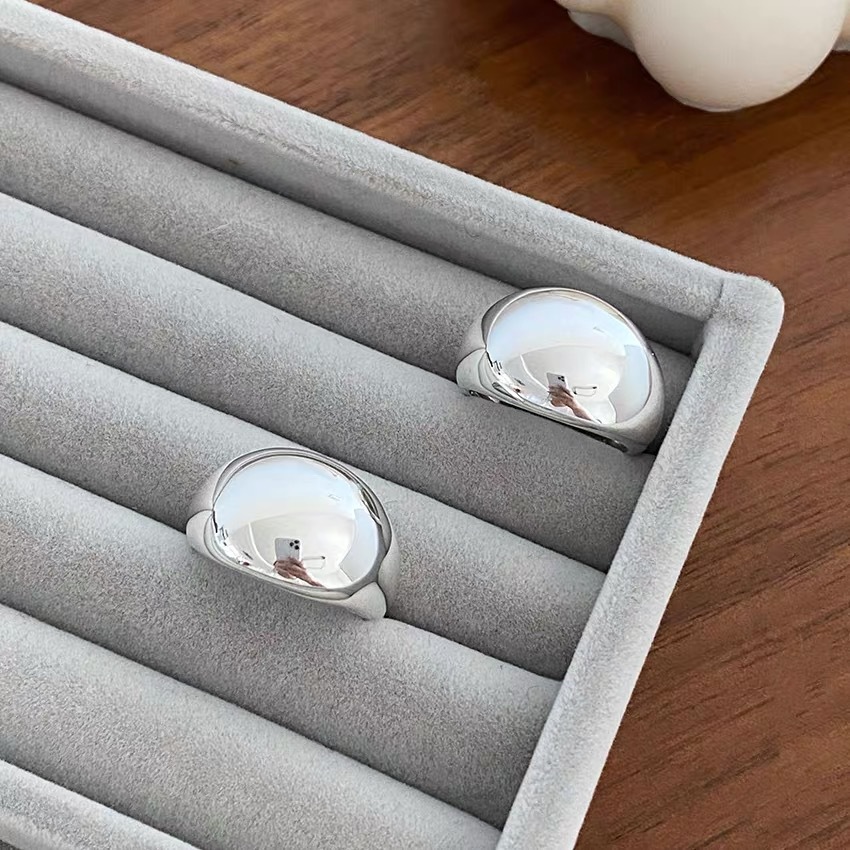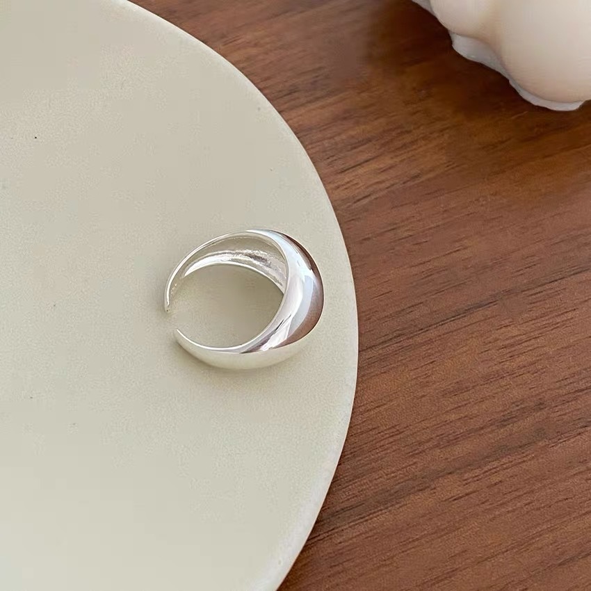 S925 sterling silver simple and niche large smooth oval opening ring, women's fashionable food ring, chubby wide face ring