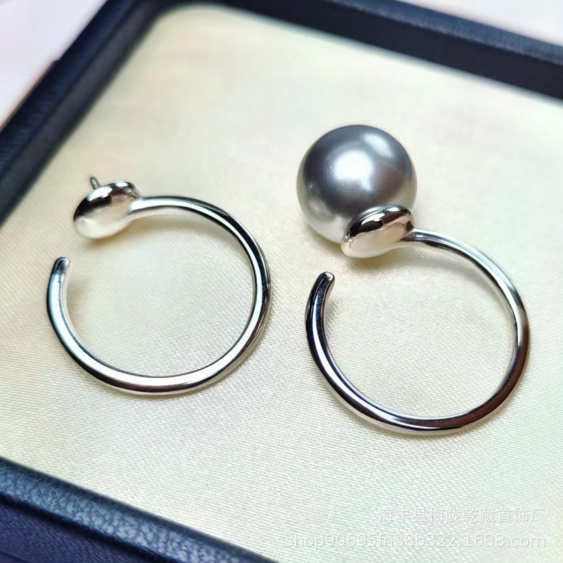 S925 sterling silver simple women's ring, pearl empty stand, adjustable ring, DIY handcrafted accessory, 10-12mm beads
