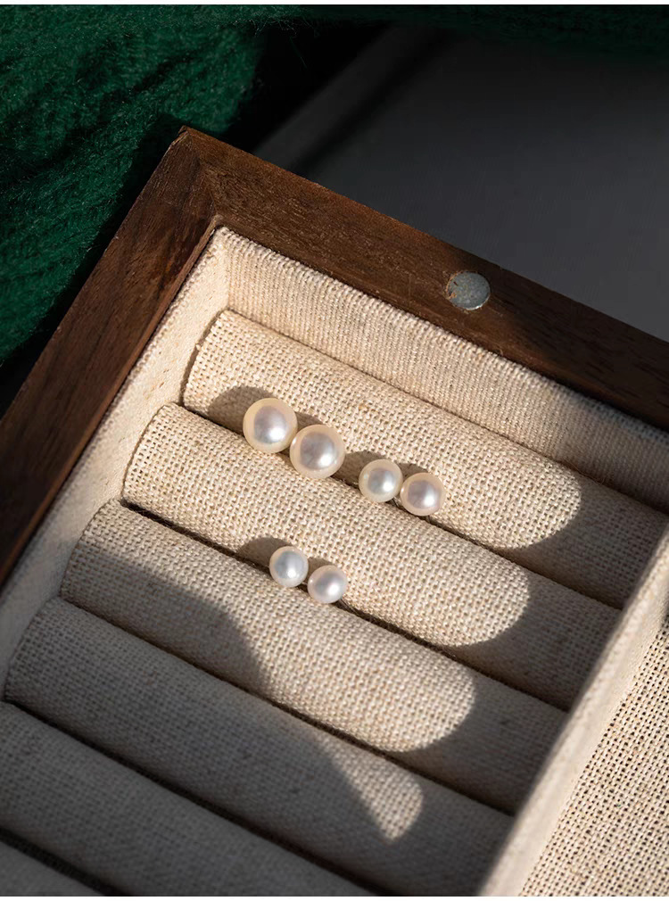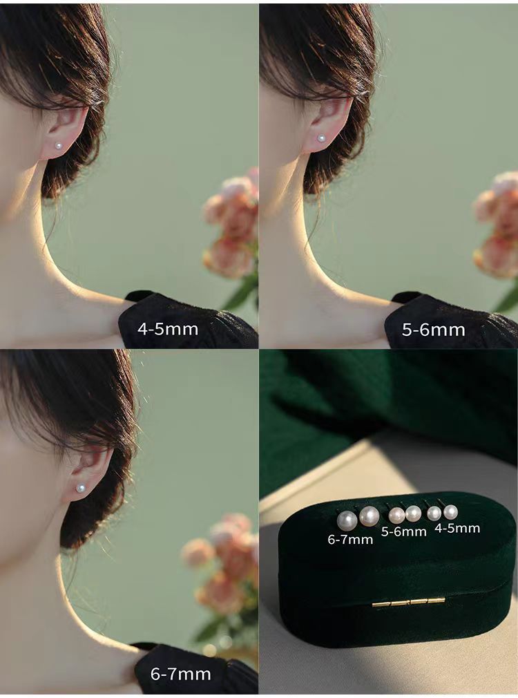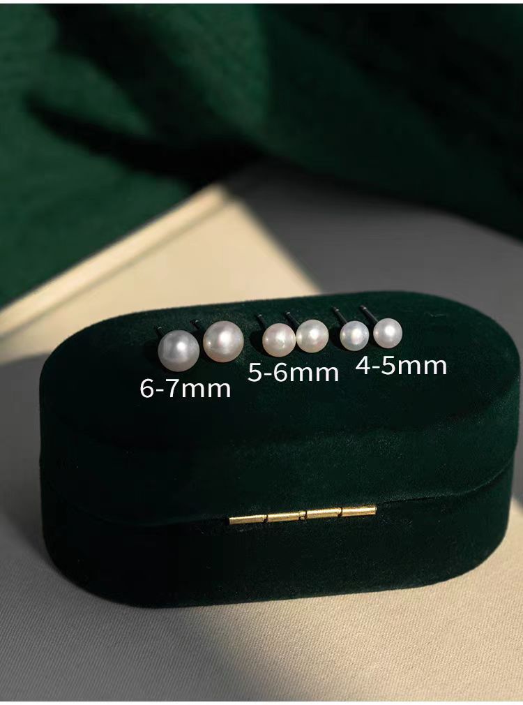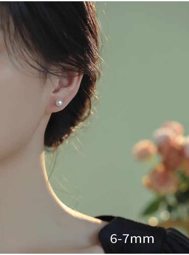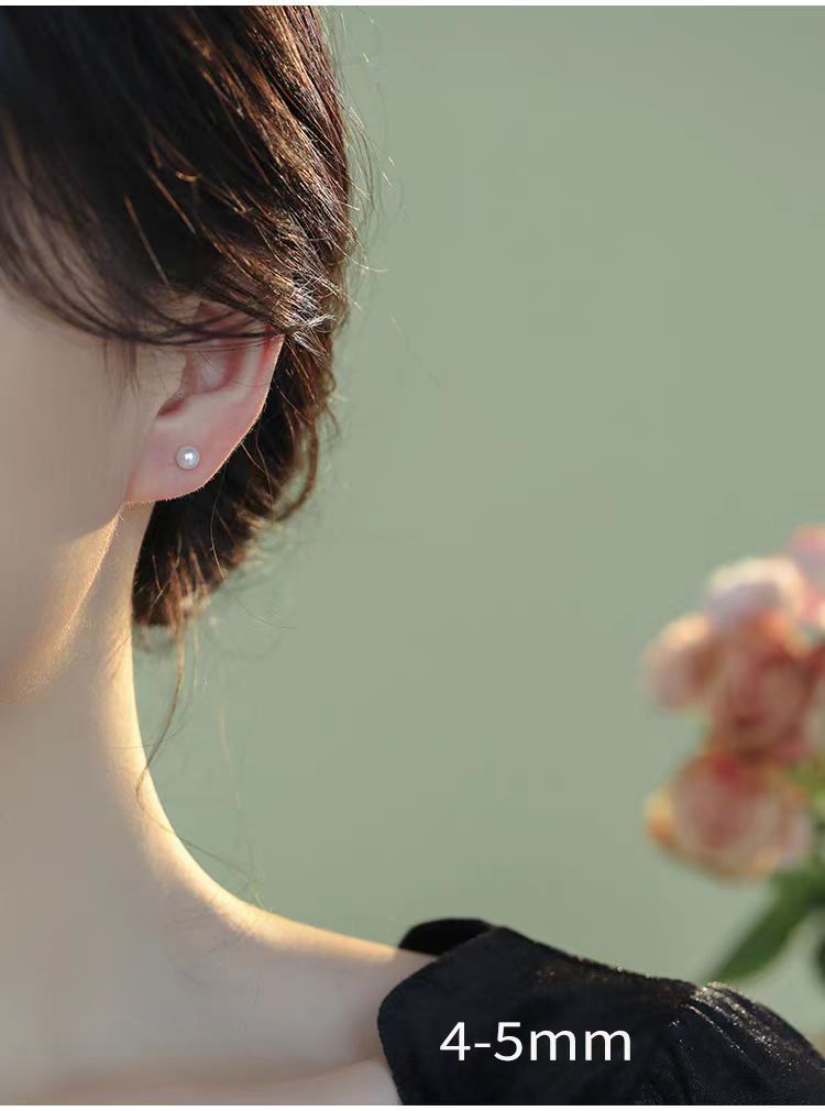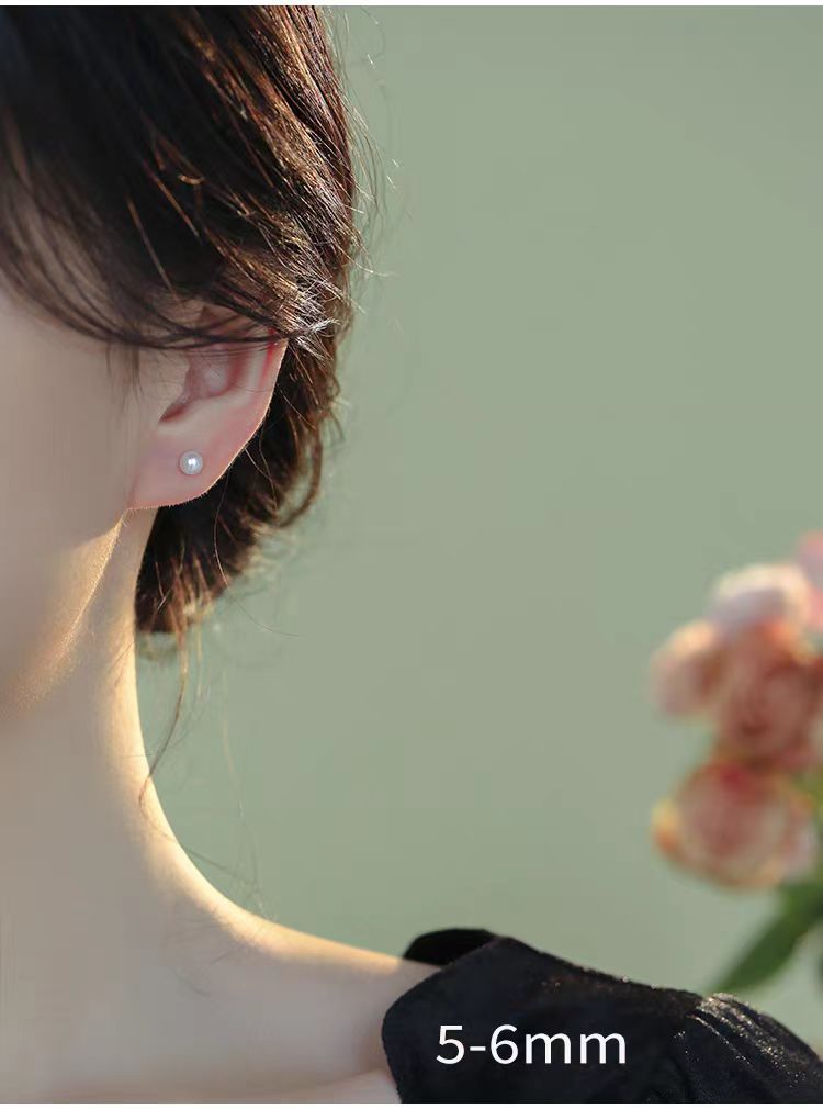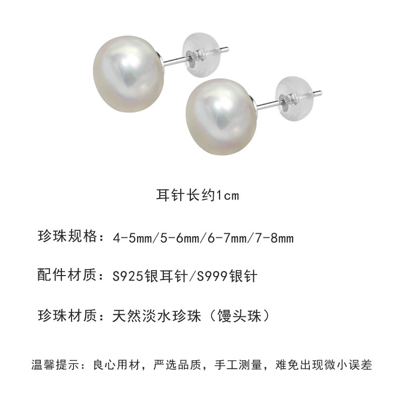 S999 Silver Mini 5A high-quality freshwater steamed bun pearl stud earrings, a simple ear-care accessory for women's daily commute, a perfect gift for best friends
