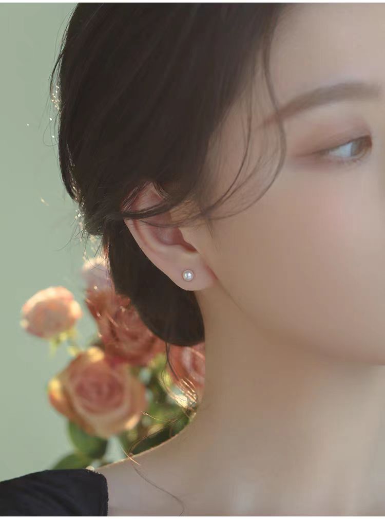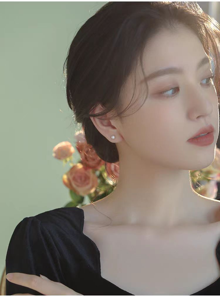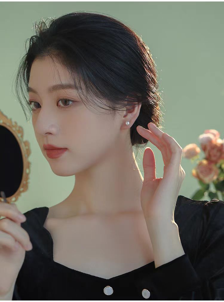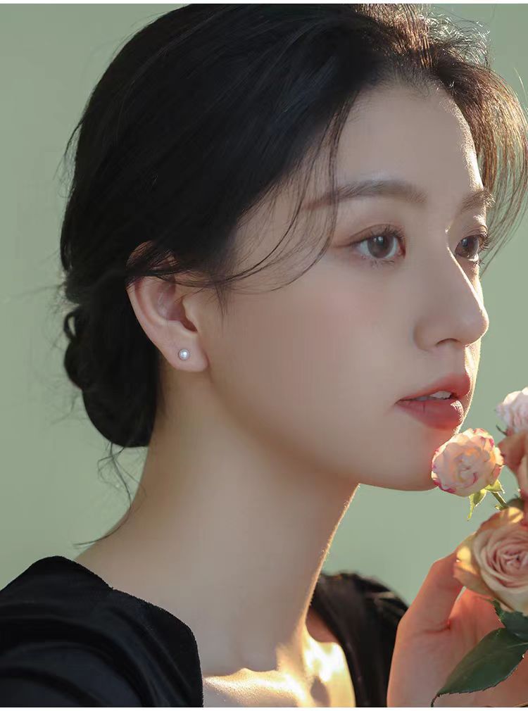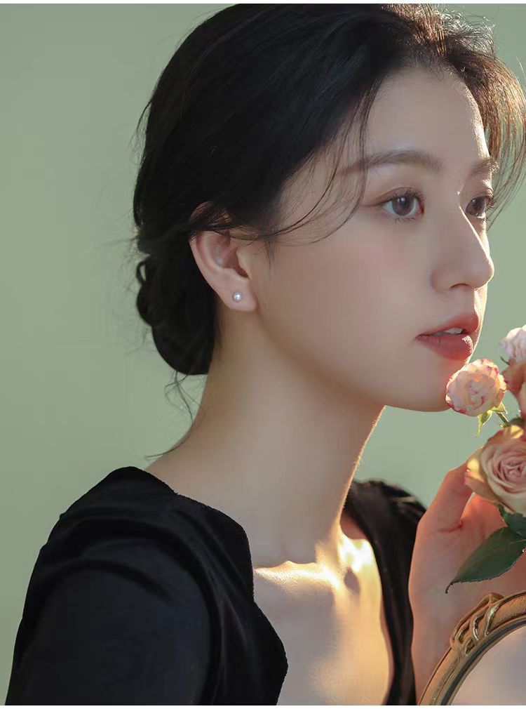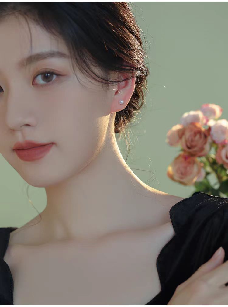 S999 Silver Mini 5A high-quality freshwater steamed bun pearl stud earrings, a simple ear-care accessory for women's daily commute, a perfect gift for best friends