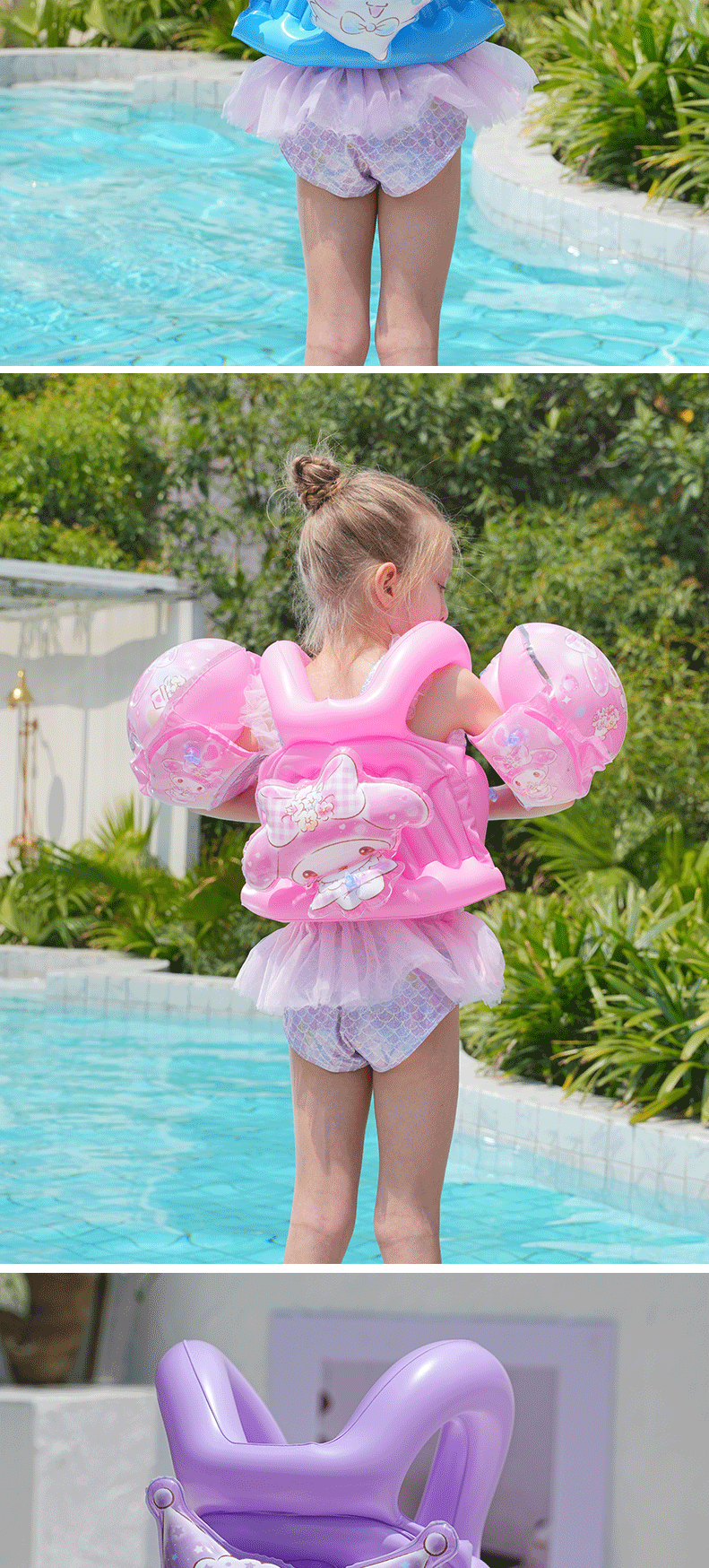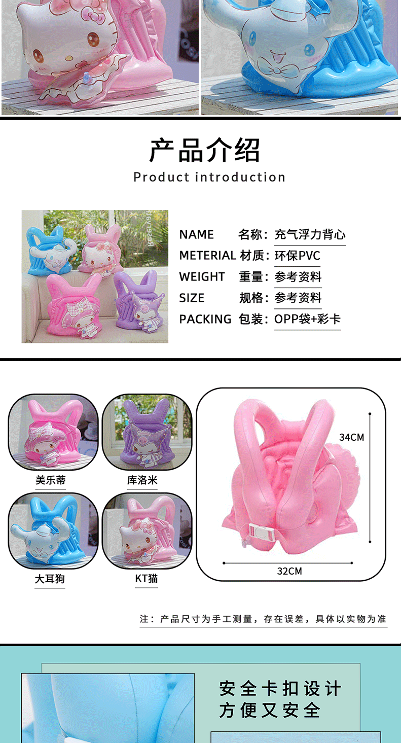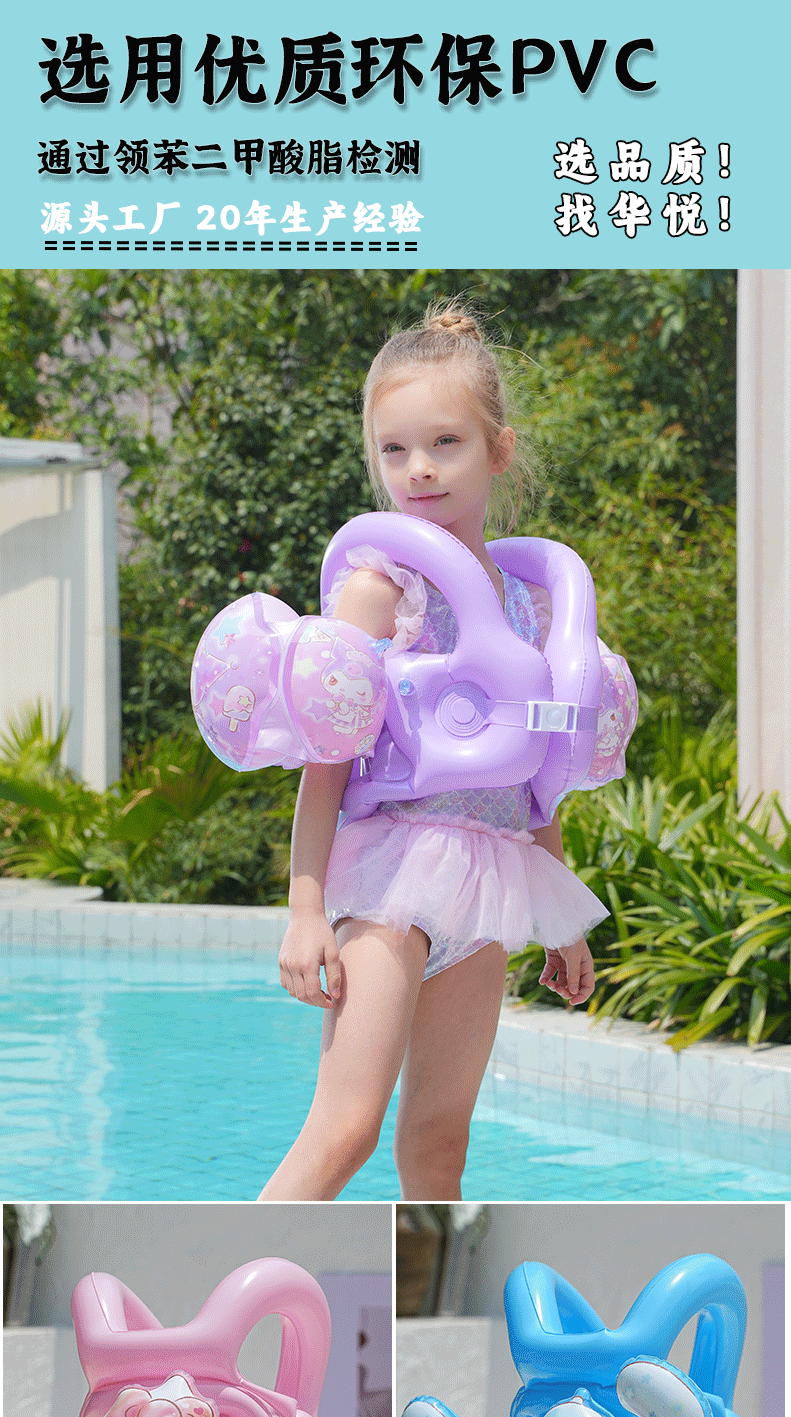 Sanrio children's swimming high-buoyancy vest, beginner swimming equipment, arm ring, inflatable vest, life jacket, high-end thickened version, children's arm ring, high-quality, environmentally friendly and safe