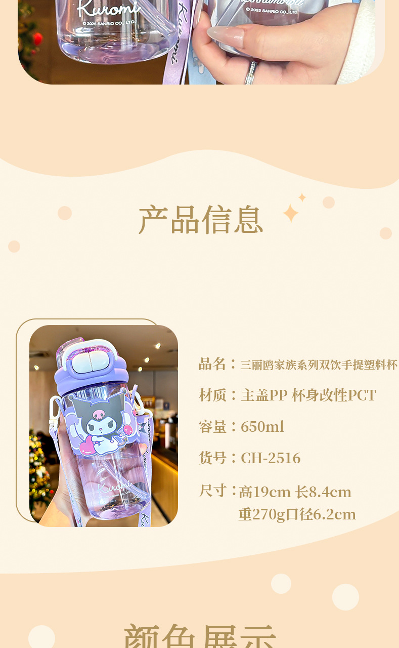 Product Name: Sanrio Family Series Double-Drinking hand-held Plastic Cup (Color Box). Price control on Taobao and Tmall: No less than 59 yuan