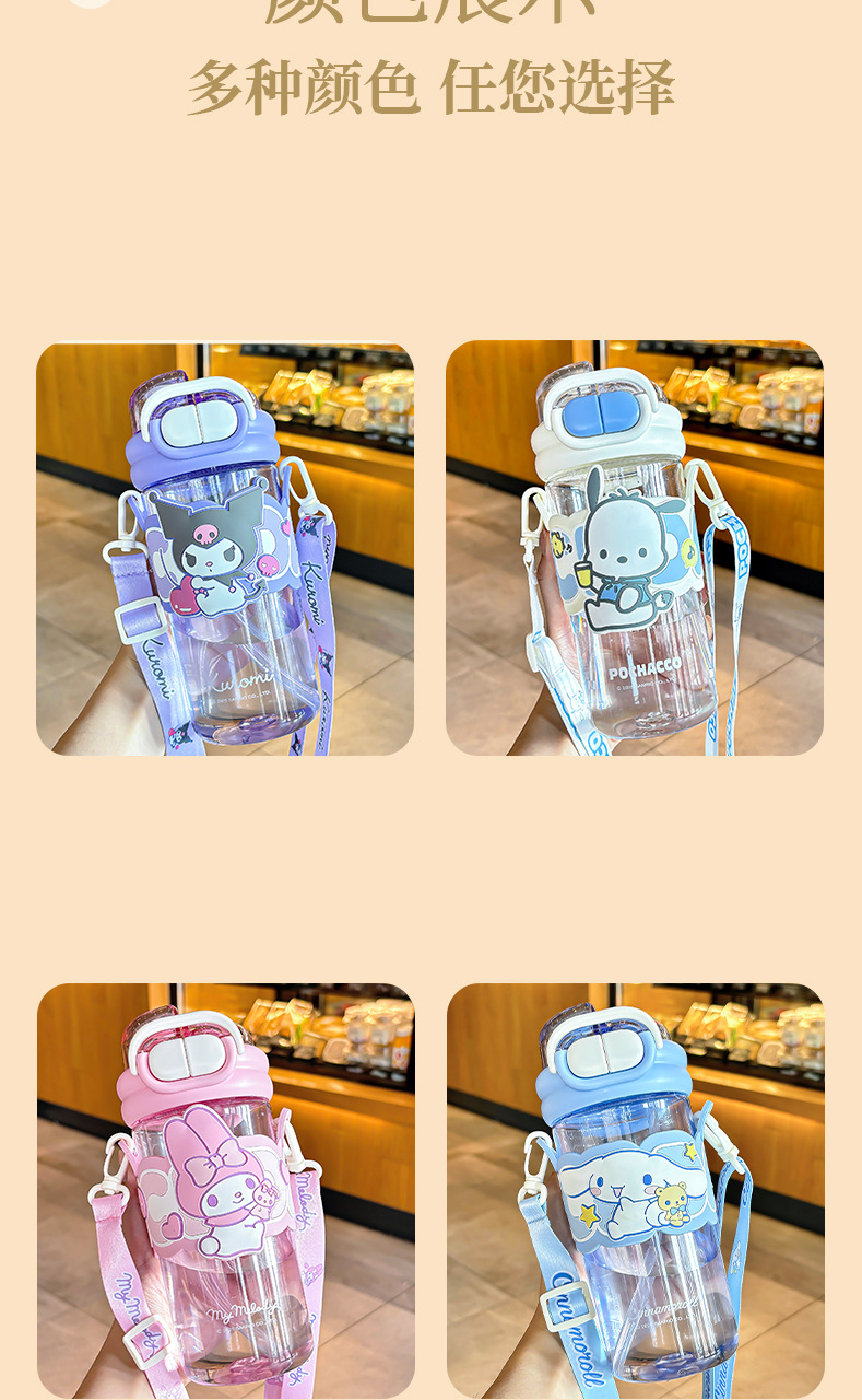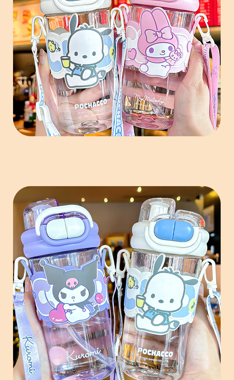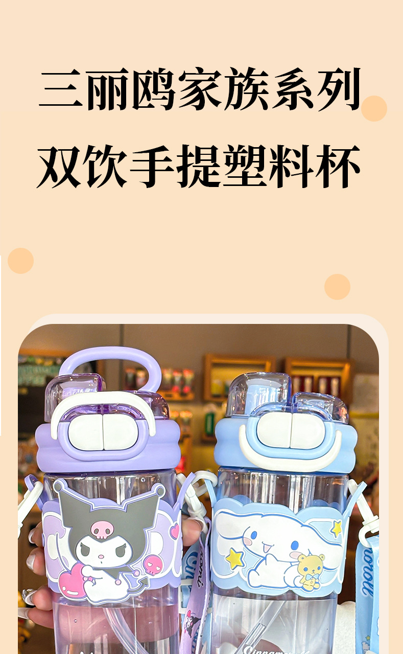 Sanrio officially authorized children's water cup with straw, portable double-drinking cup, lock, large-capacity plastic cup for female students