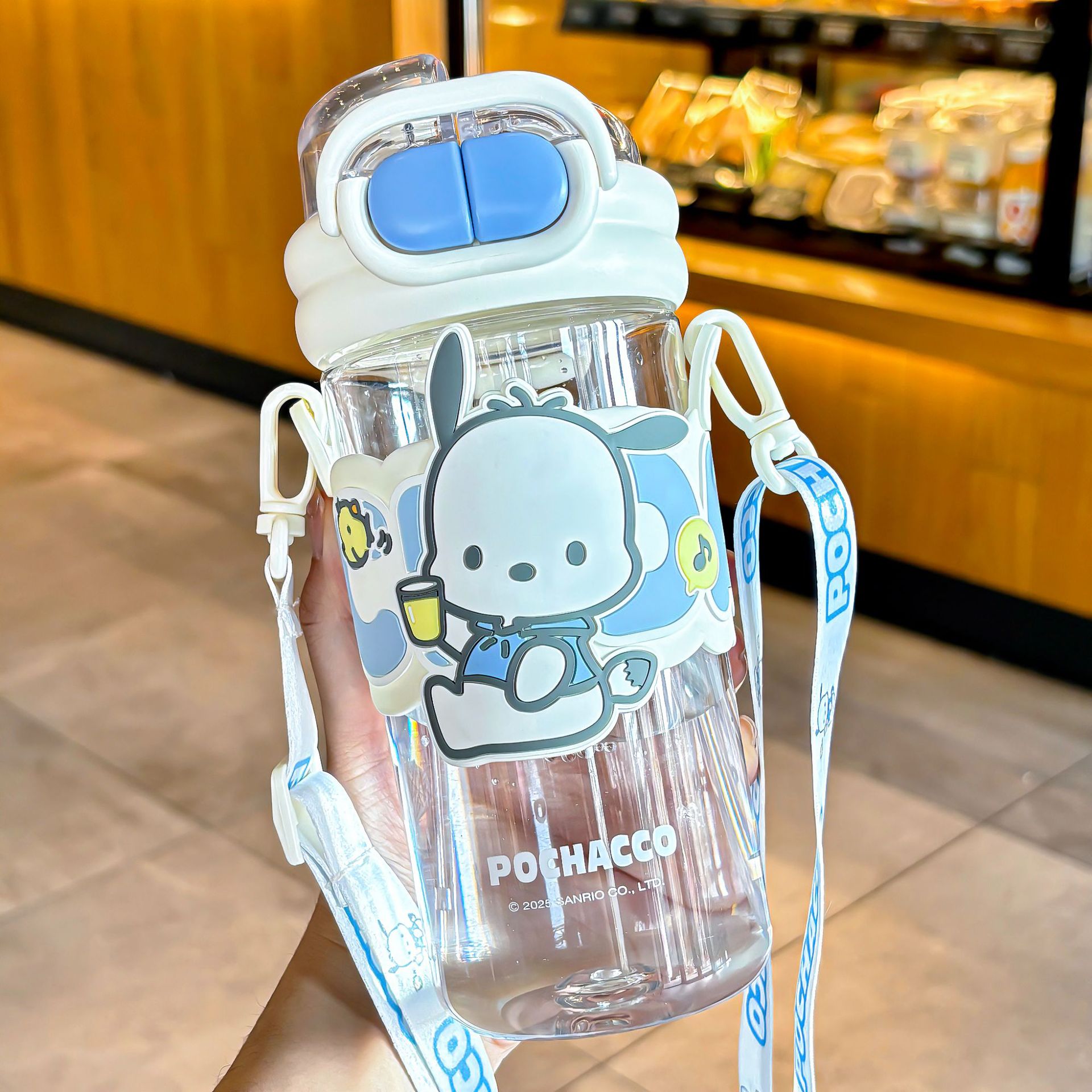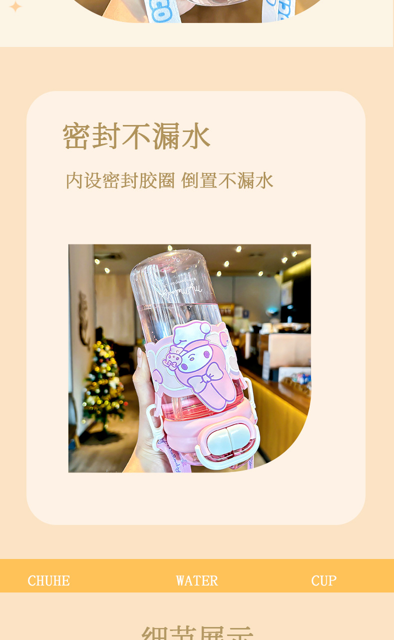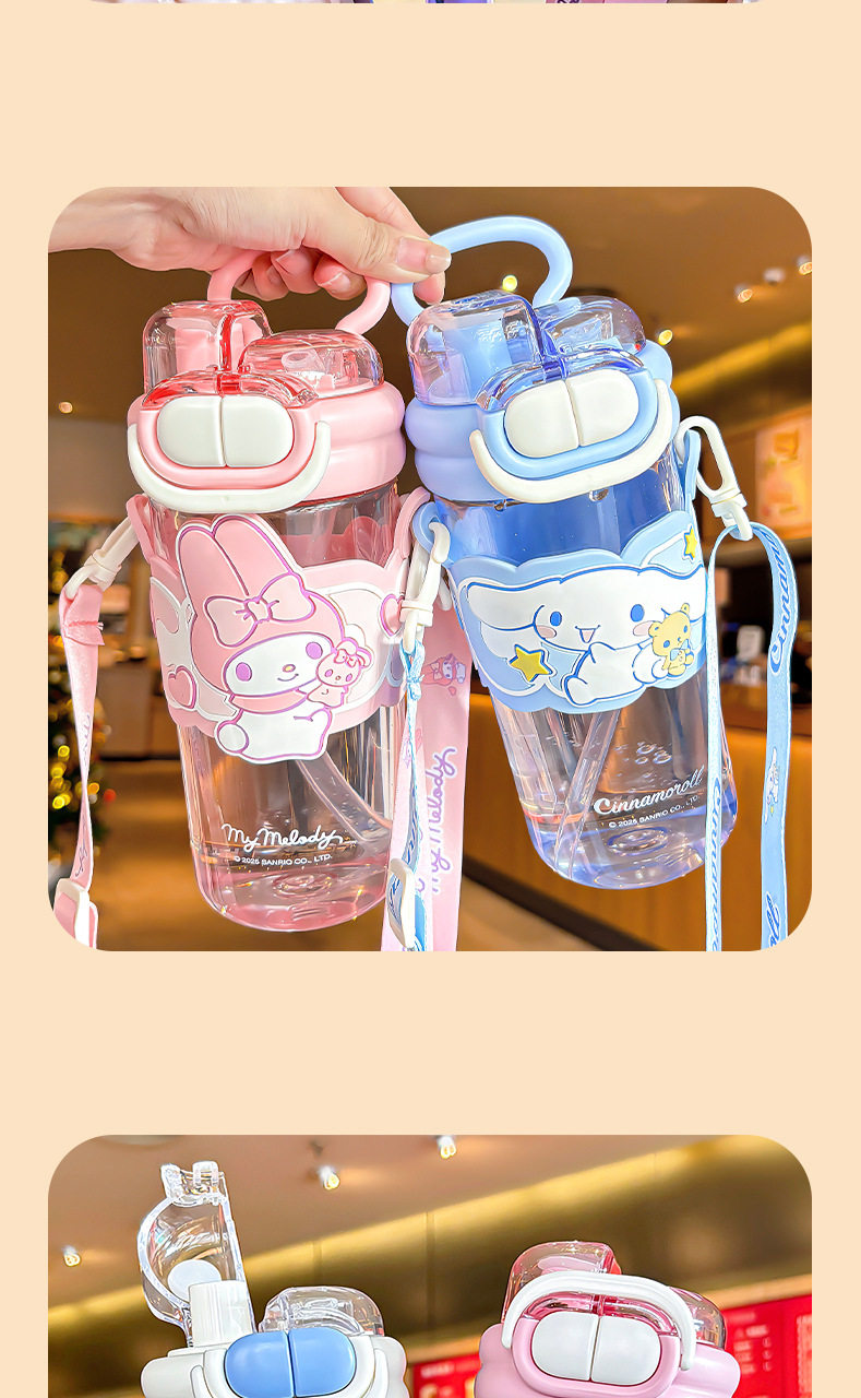 Sanrio officially authorized children's water cup with straw, portable double-drinking cup, lock, large-capacity plastic cup for female students