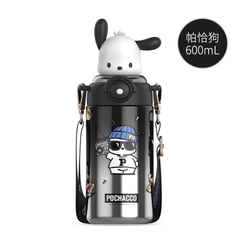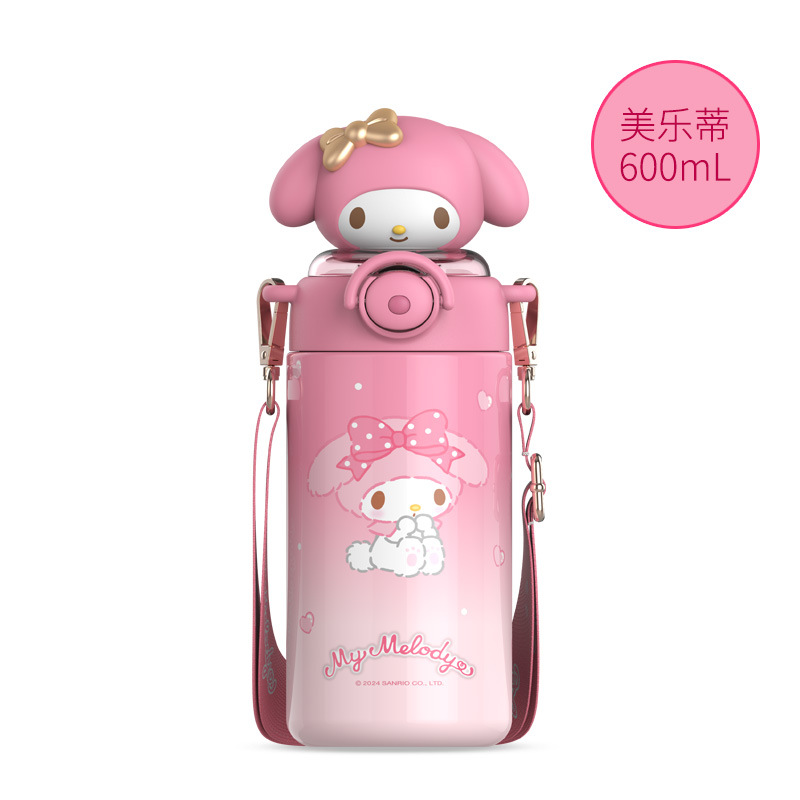 Sanrio Sunshine Insulated Cup, Kuromi Girls' High appearance Level Student Water Cup, Double Drinking Straw Cup, Children's Water bottle
