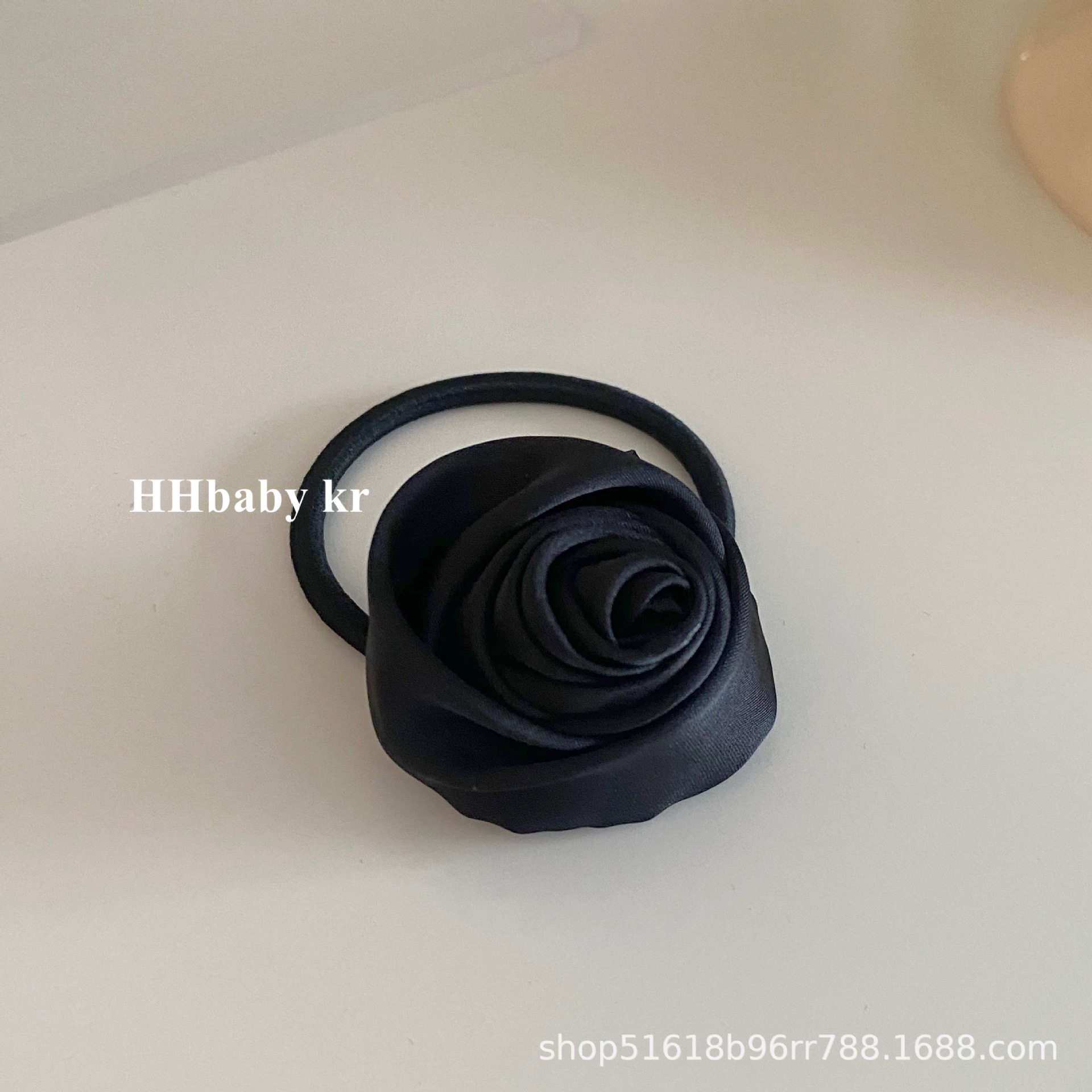 Satin rose flower hair band and hair tie with a high-end feminine look, ins retro super fairy leather band, Korean-style hair accessory, ponytail hair tie