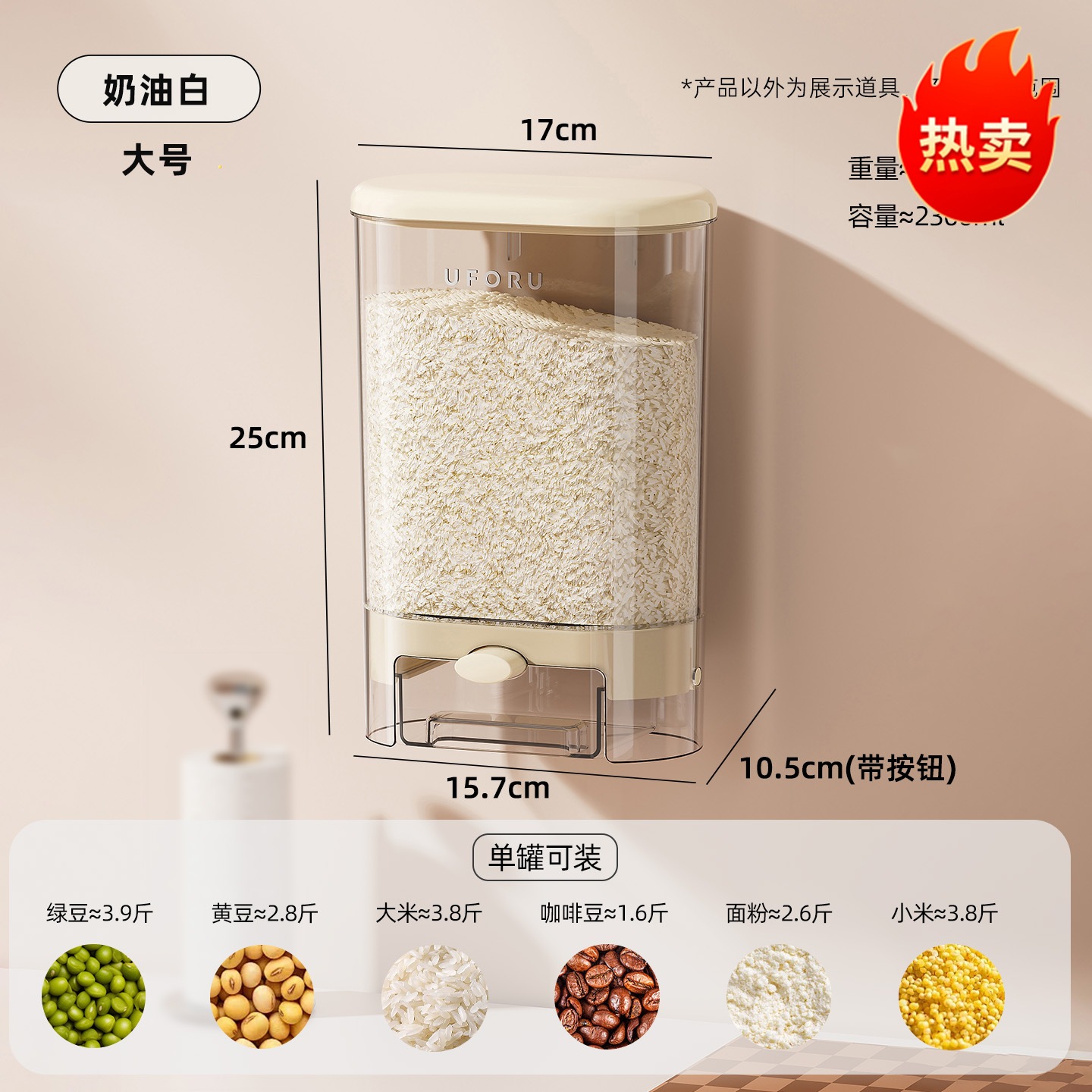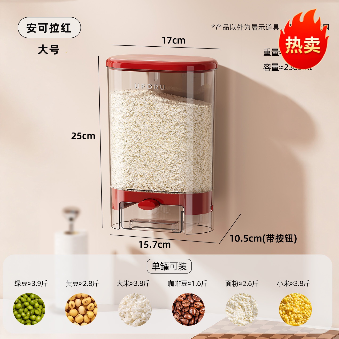 Sealed jar, household kitchen wall-mounted food-grade grain storage bucket, large-capacity press-out rice and grain jar
