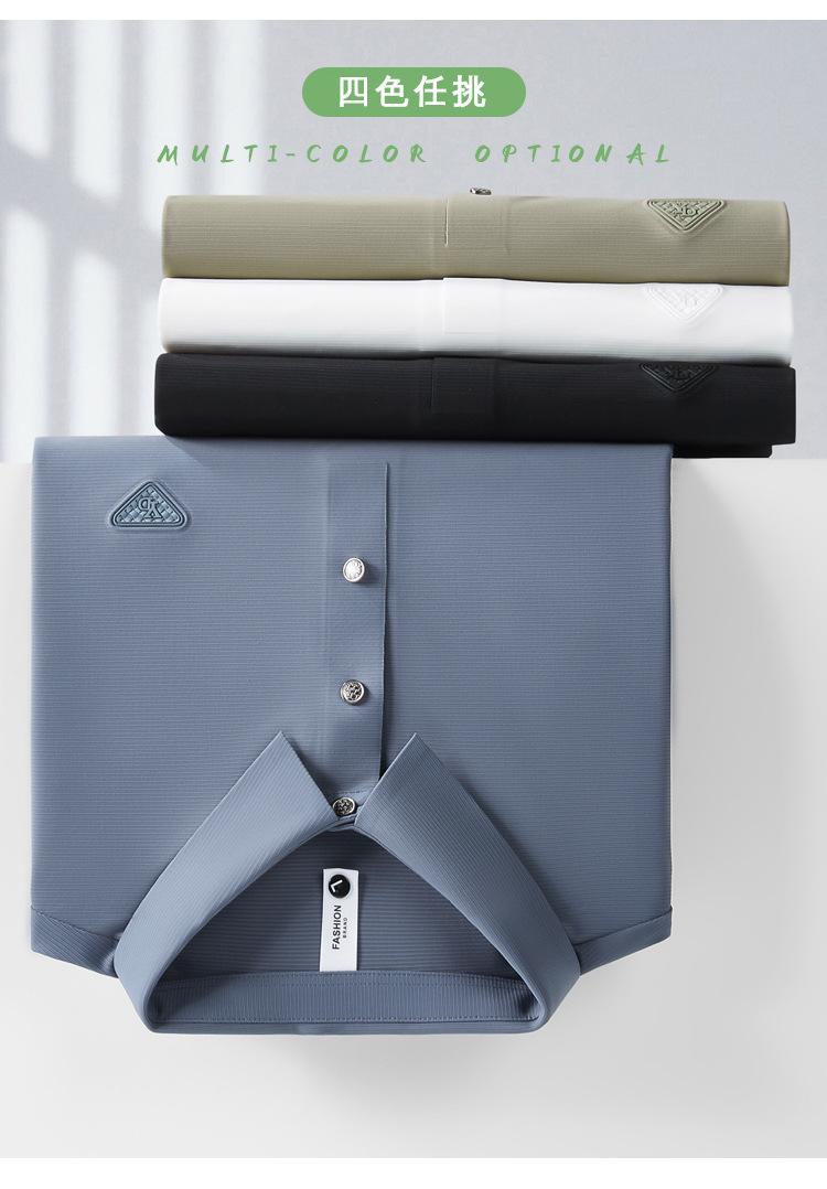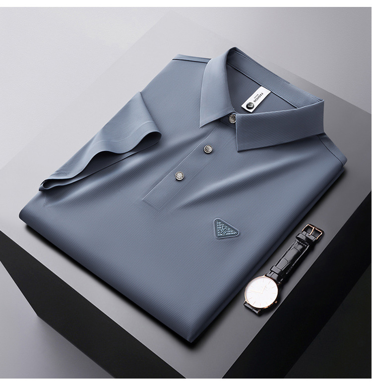 Seamless embossed short-sleeved Polo shirt for men's business casual summer, thin, wrinkle-free Korean-style stretch T-shirt 2023 new style