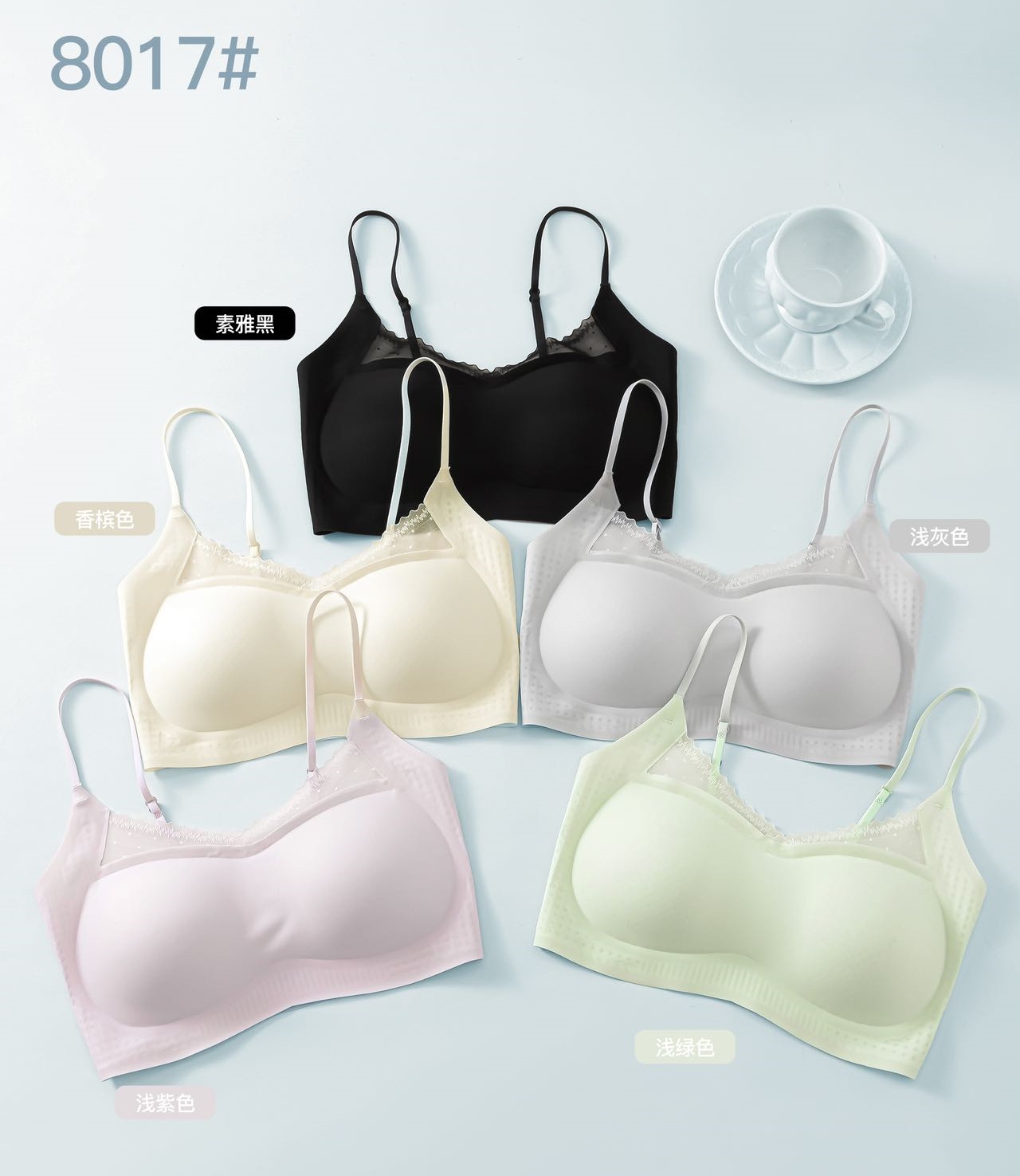 Seamless jelly strip soft support ultra-thin underwear, comfortable one-piece cup nude feel bra, adjustable two-wear lace beautiful back