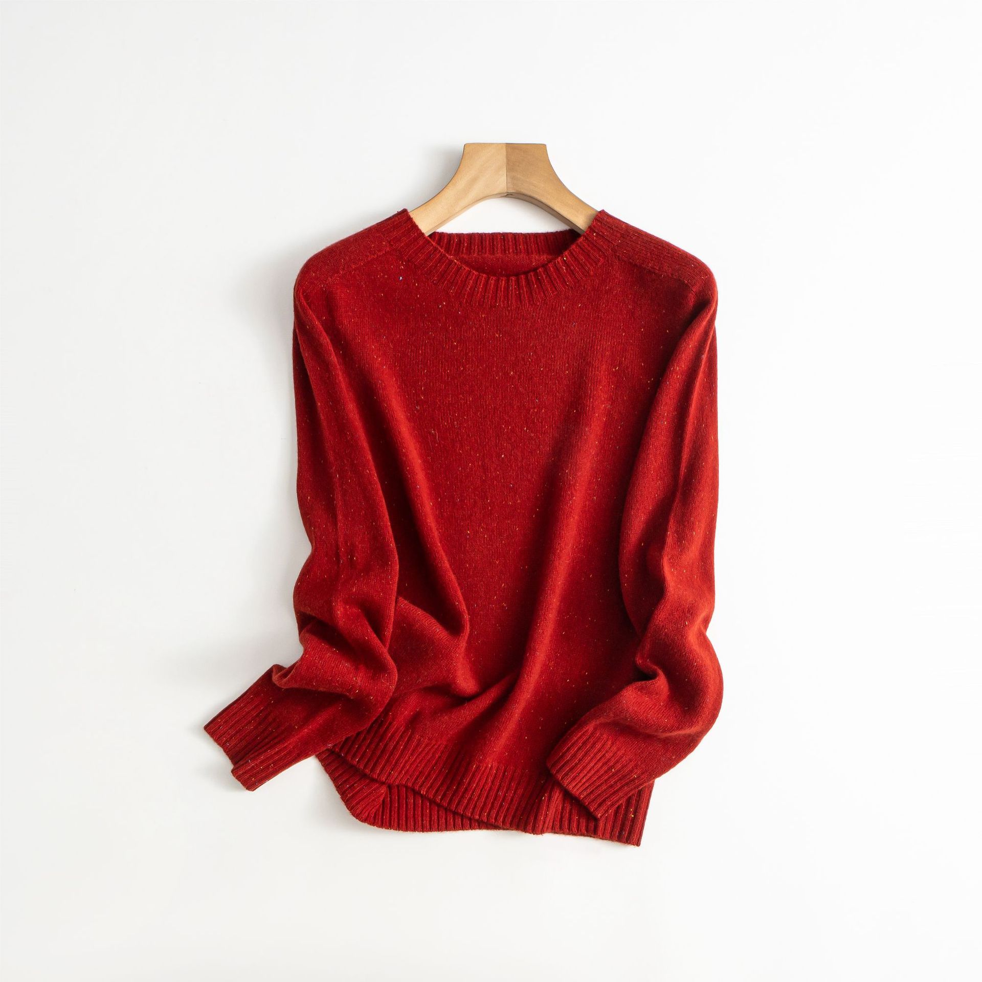 Seamless one-piece 100 wool sweater 2024 early autumn new floral yarn round-neck knitted sweater women's shoulder long-sleeved base layer