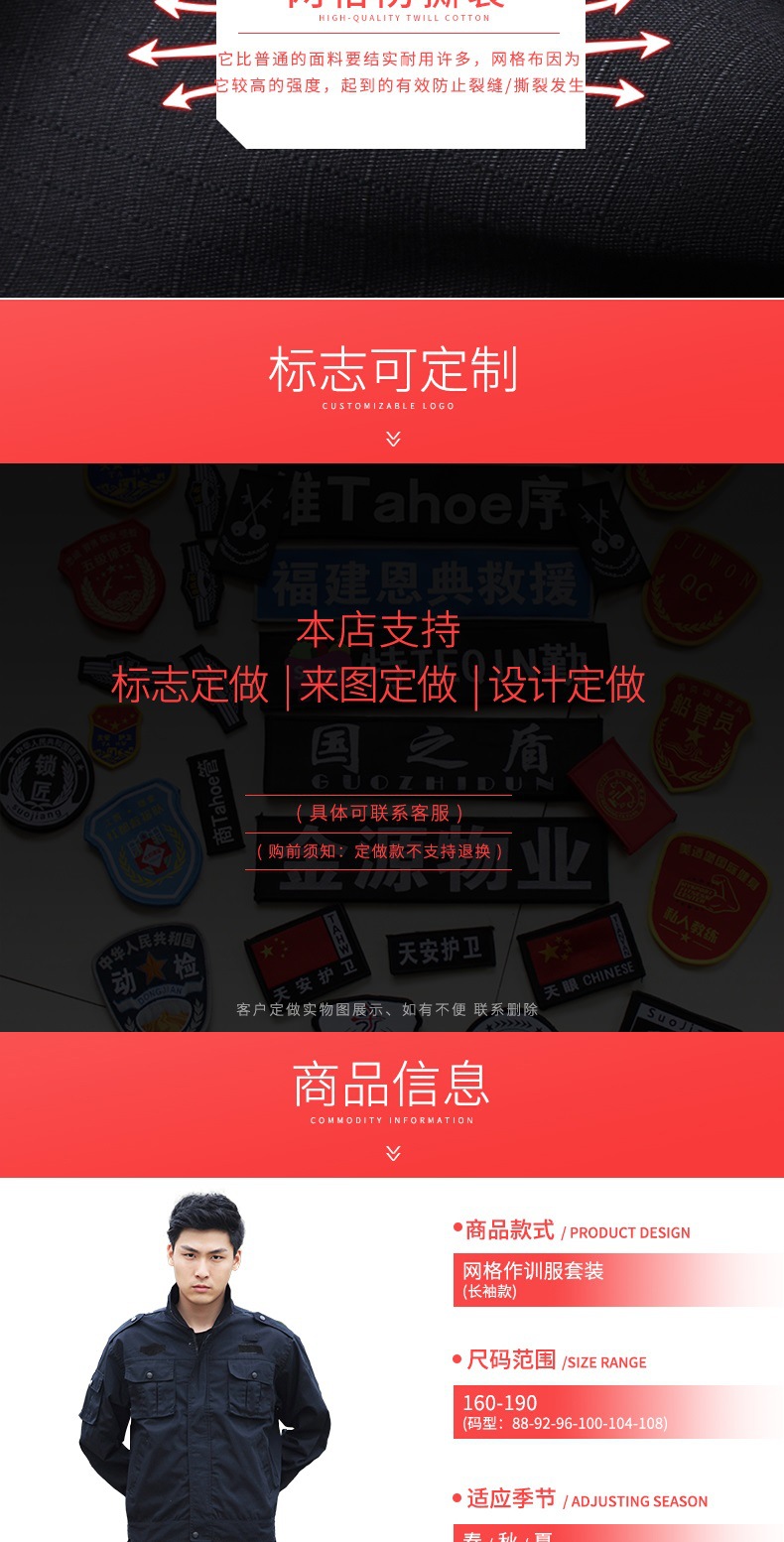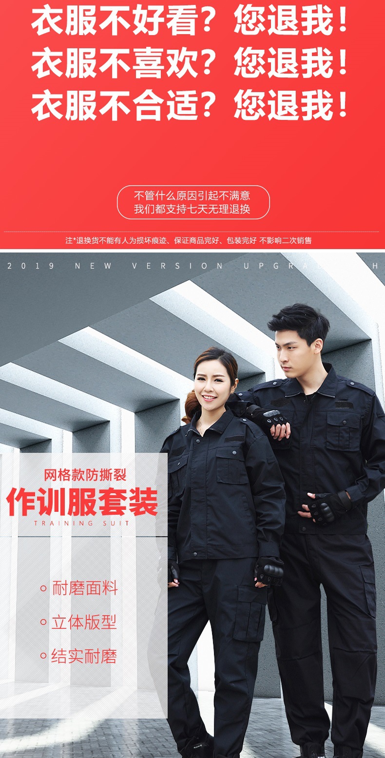 Security training uniform, spring, autumn and winter grid style set, men's jacket-style duty training uniform, security work uniform