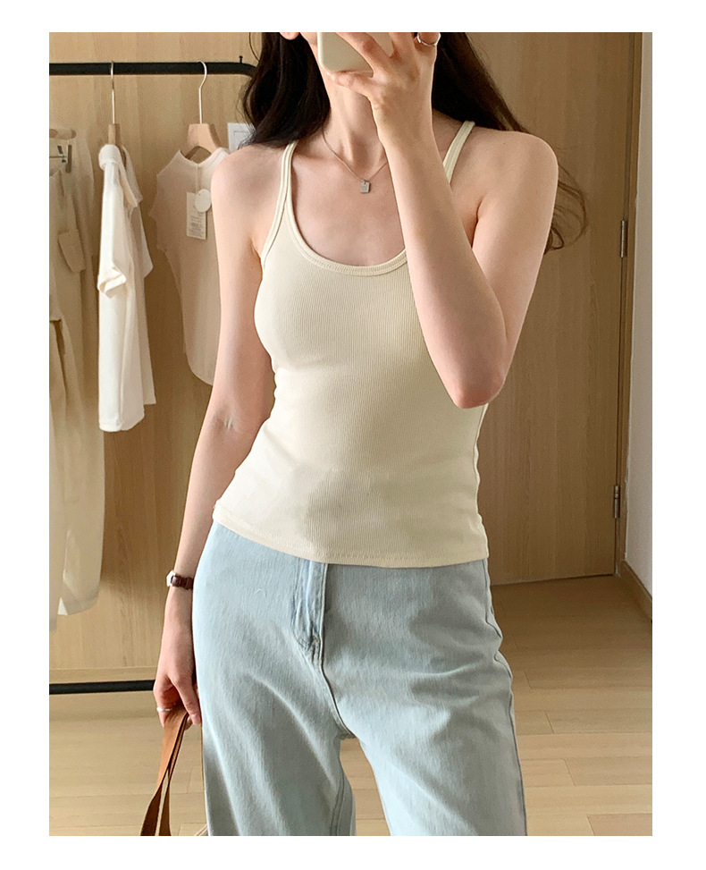 Selected threaded cotton 2025 summer new style Spicy Girl halter top, women's word word innerwear and outerwear, beautiful backrest and chest padded top