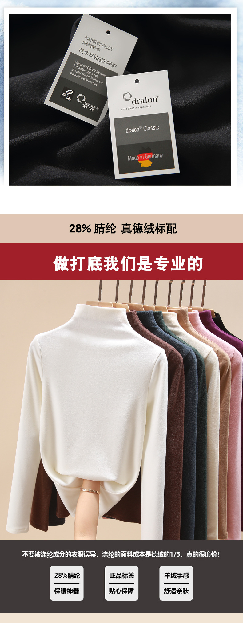 Mid-collar skin tone, double-sided German velvet