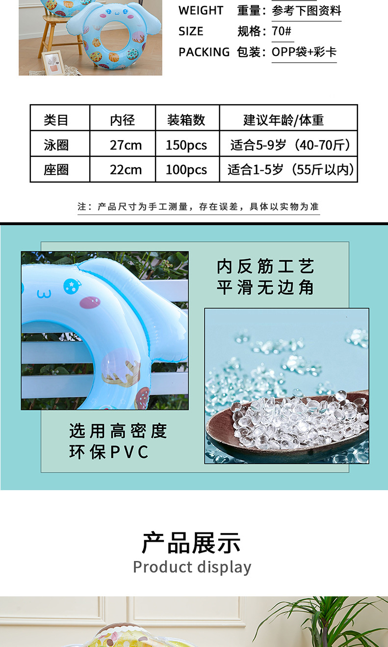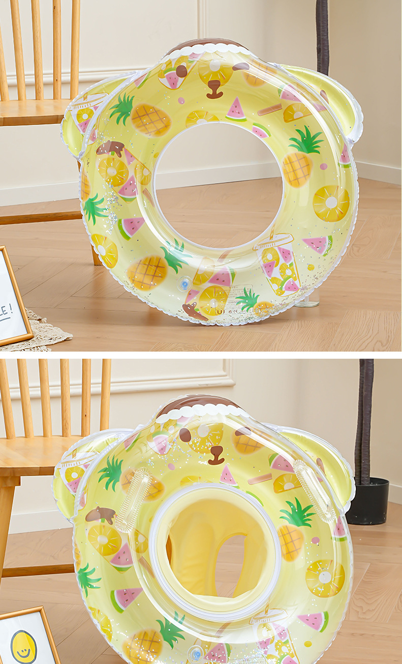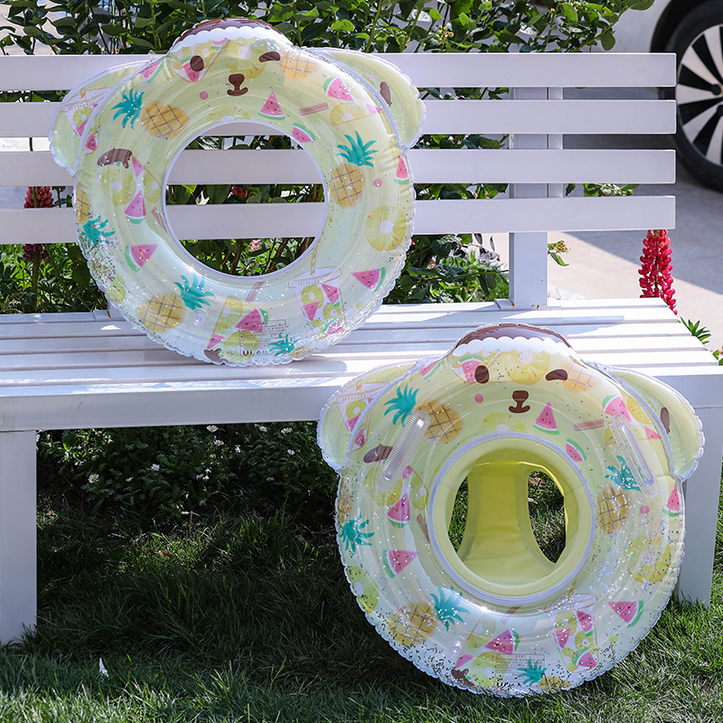 Sequined transparent printed children's swimming ring handle, cartoon baby sponge bottom pocket, thickened eco-friendly swimming ring