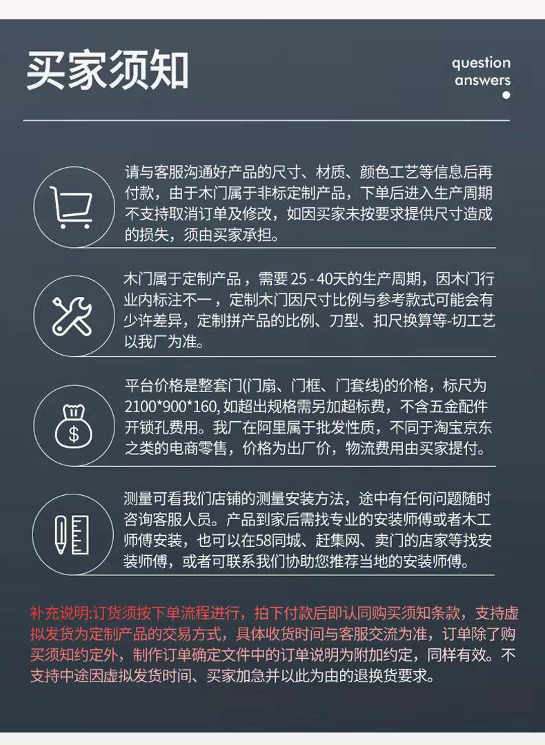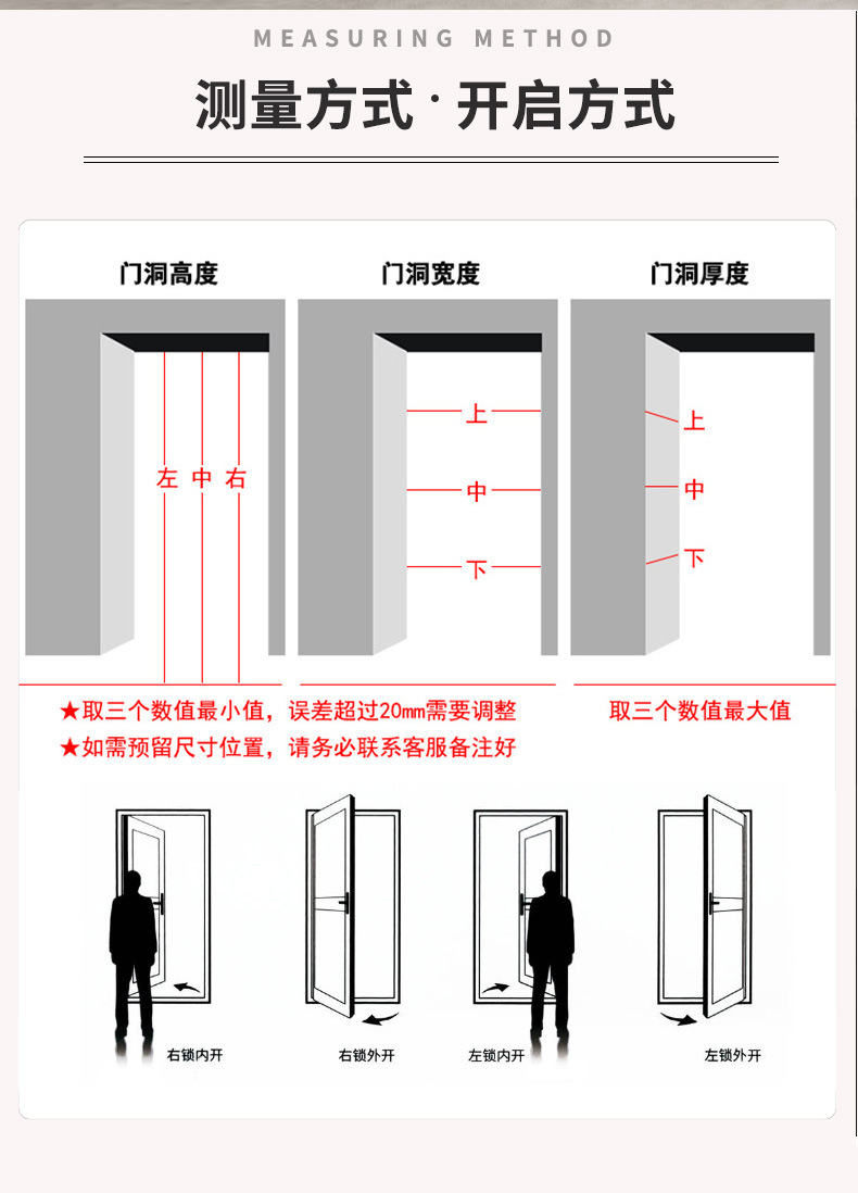 The standard frame size is 2100*900*150 and the door leaf thickness is 45mm
