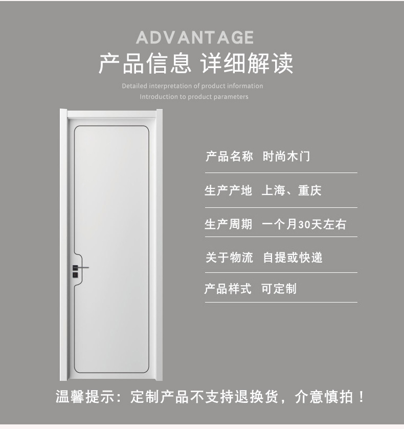 Shanghai manufacturer's direct sales of new light luxury minimalist bedroom room wooden doors, solid wood composite lacquered doors and ecological room doors