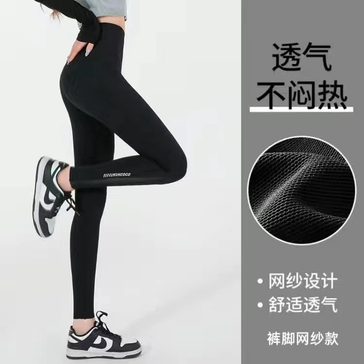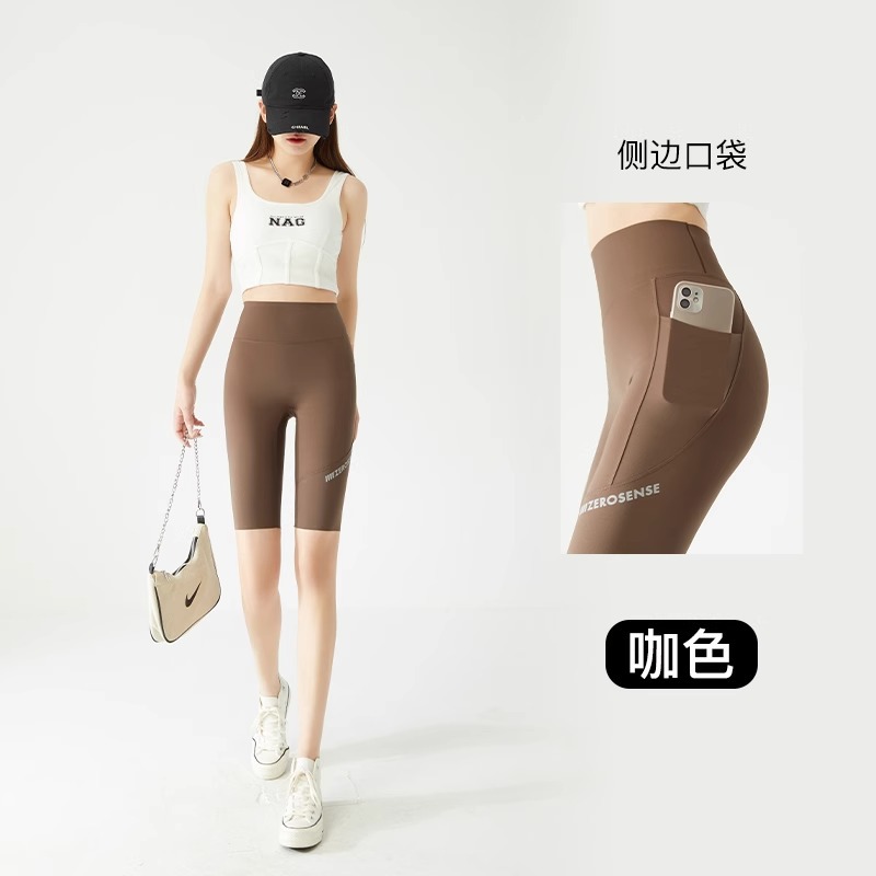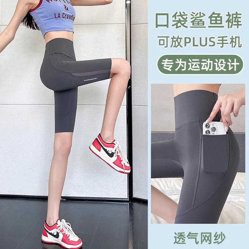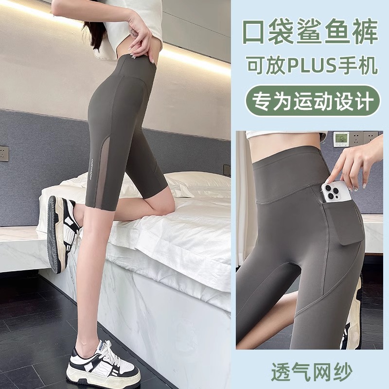 Shark pants summer thin women's pocket mesh outerwear 2024 new belt-slimming and hip-lifting yoga Barbie cycling leggings