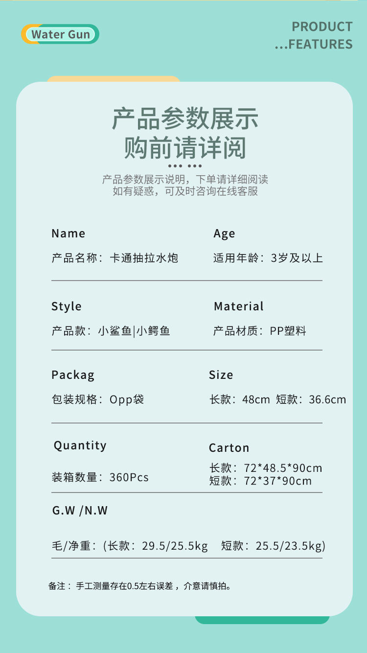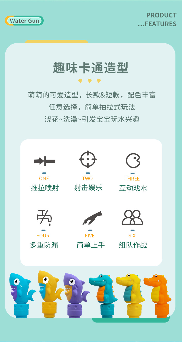 Shark water pump, crocodile water cannon, water gun, children's rafting, water play, beach, street stall, toys, transparent water gun wholesale