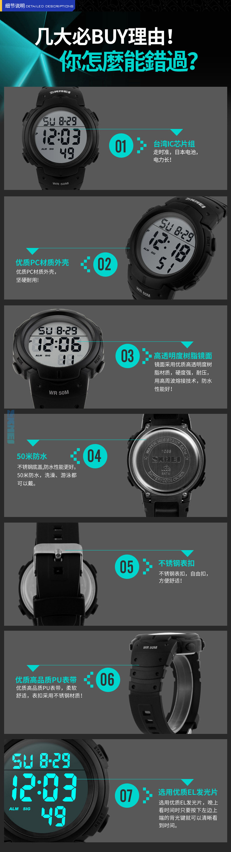 Shike Mei men's watches, fashionable, waterproof, outdoor sports electronic watches, personalized wristwatches, cross-border e-commerce watches