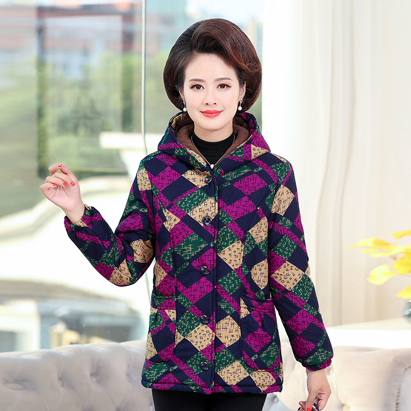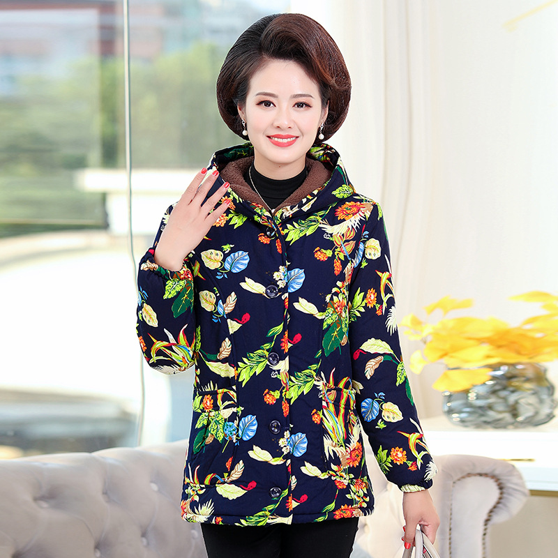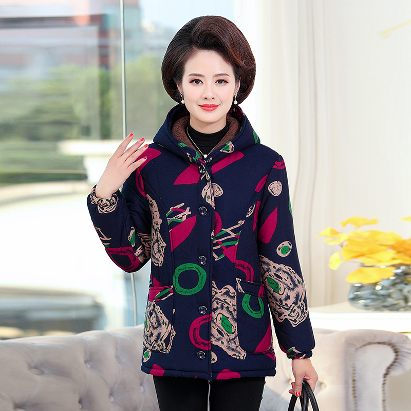 Short cotton-padded clothes for middle-aged and elderly women's winter wear with added fleece and thickening, short cotton-padded clothes for grandmothers, and large-sized cotton jackets for mothers aged 50 to 70