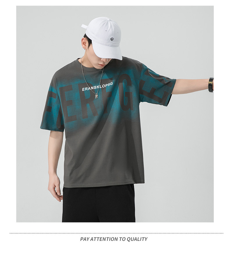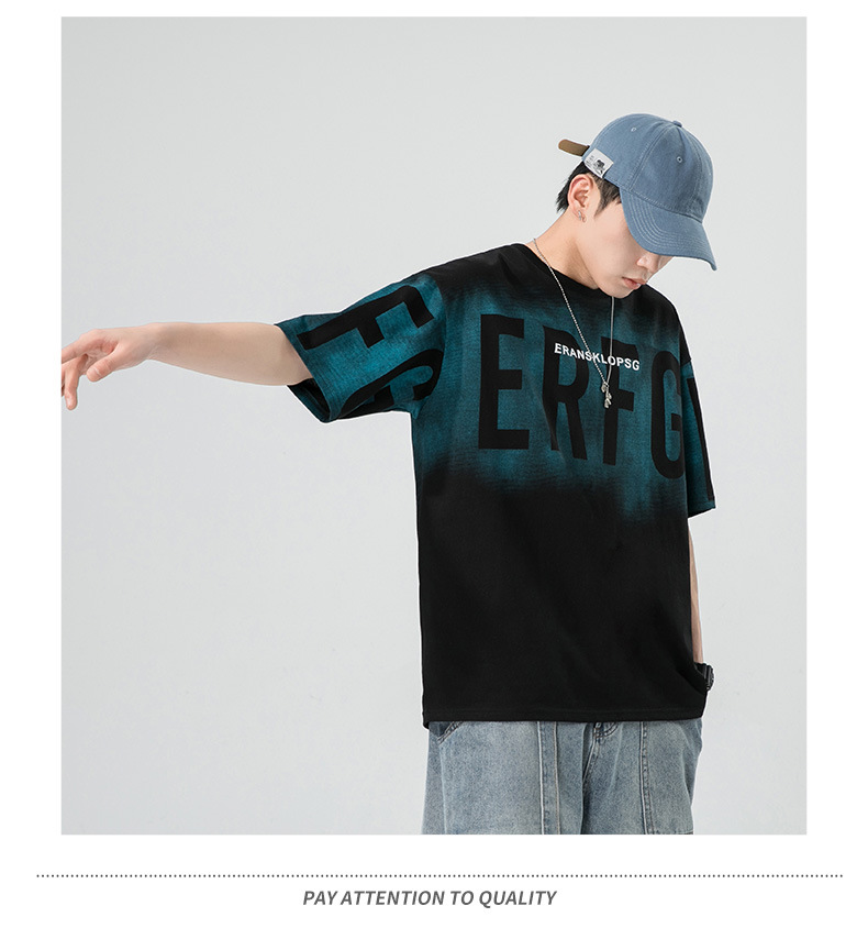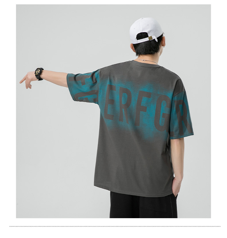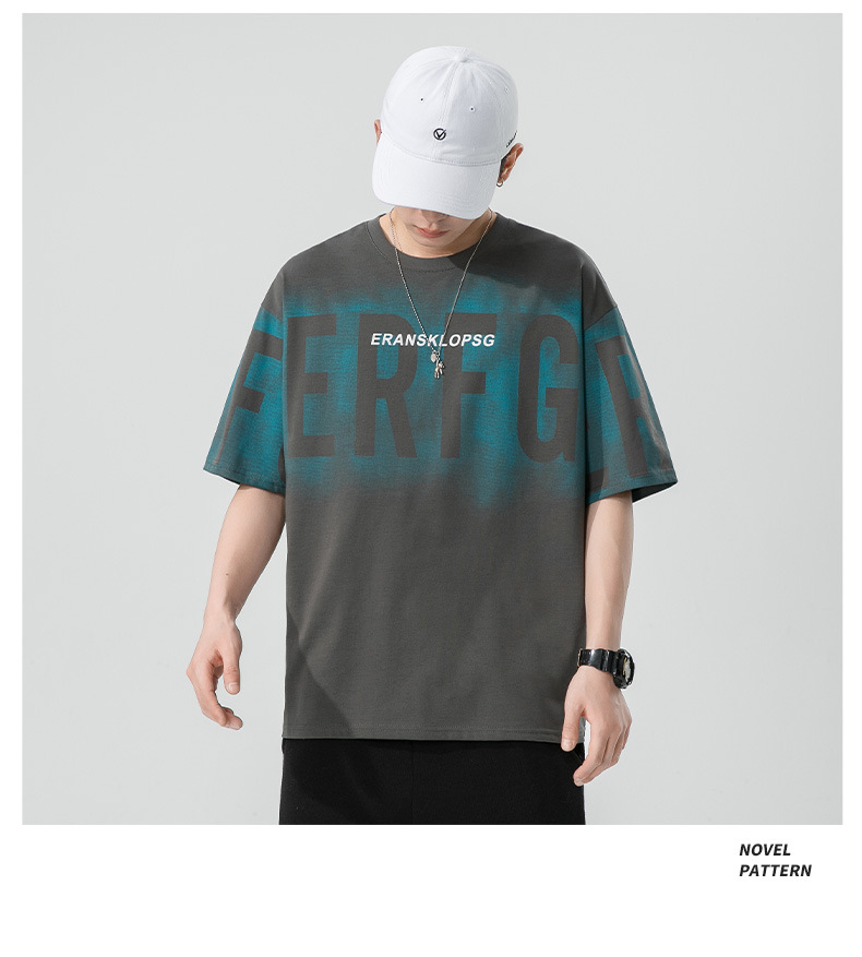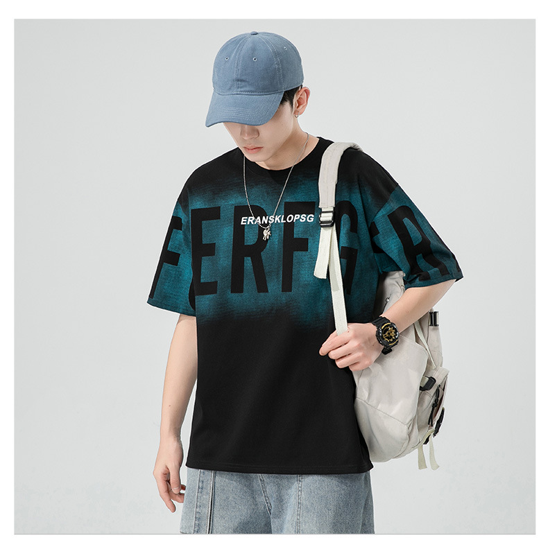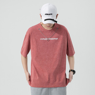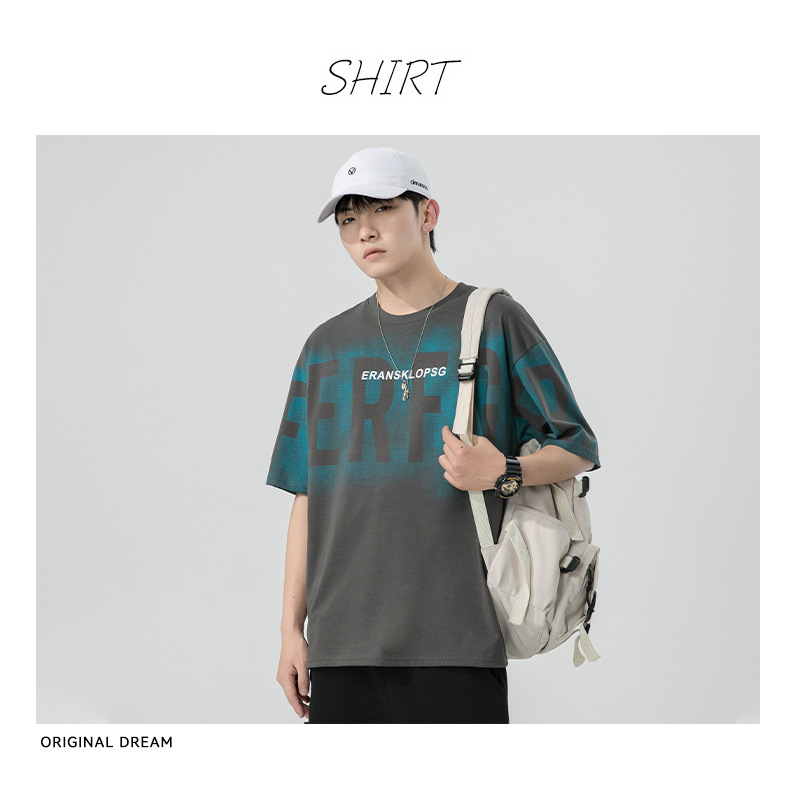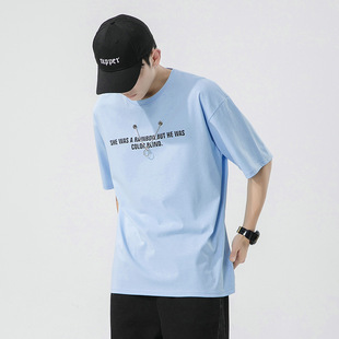 Short-sleeved T-shirt for men, a trendy ins brand. Loose round-neck letter-printed men's half-sleeved T-shirt. Japanese trendy men's clothing
