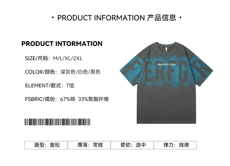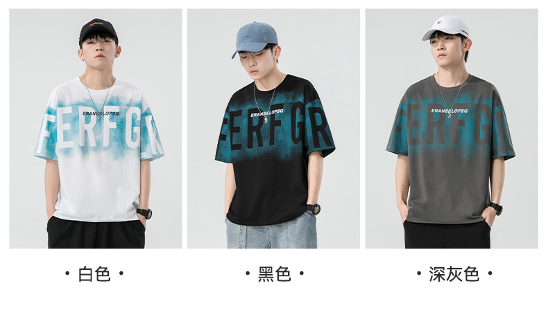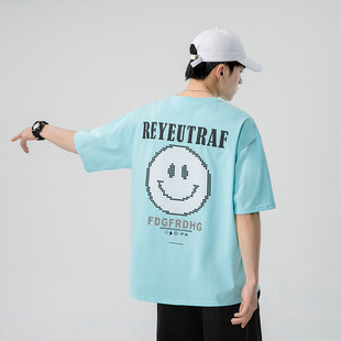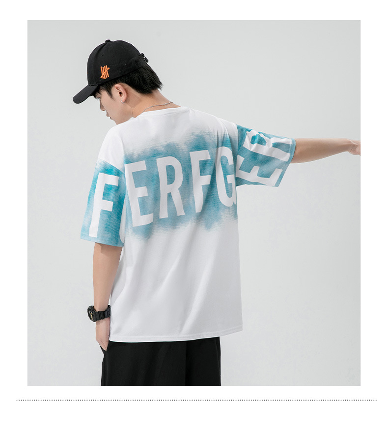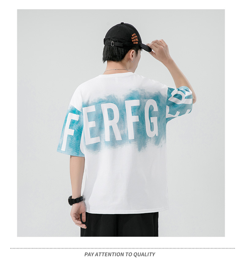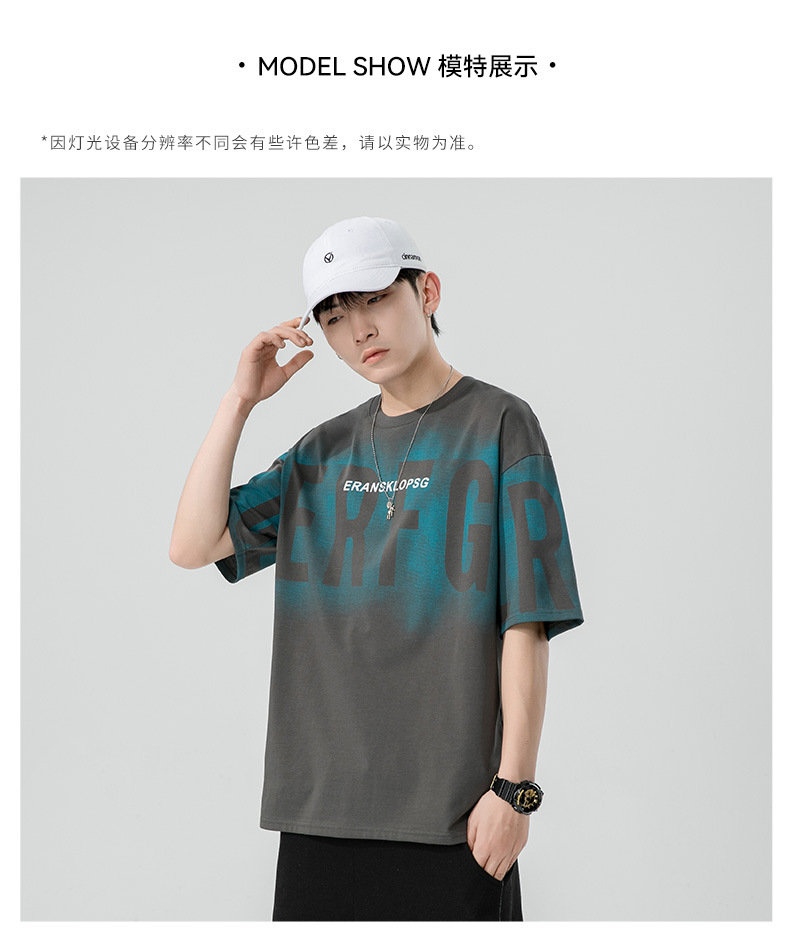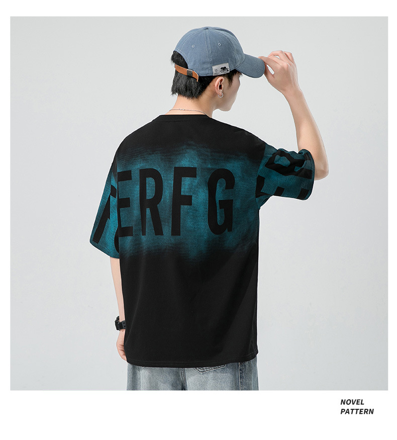Short-sleeved T-shirt for men, a trendy ins brand. Loose round-neck letter-printed men's half-sleeved T-shirt. Japanese trendy men's clothing