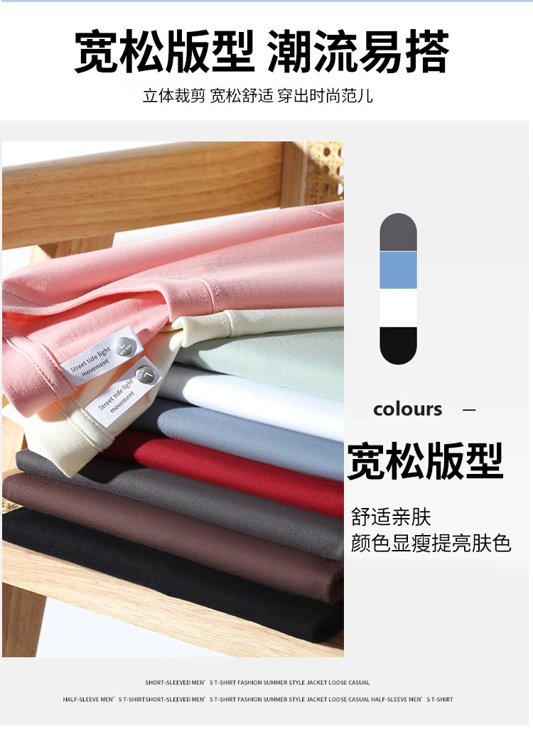 Short-sleeved T-shirt for men, pure cotton 180g, summer trendy brand, couple's innerwear, half-sleeved T-shirt, loose top for students, ins