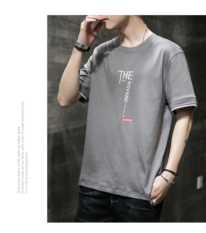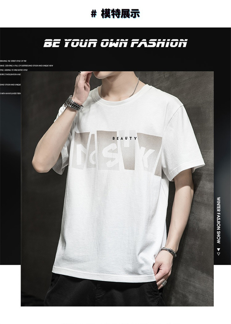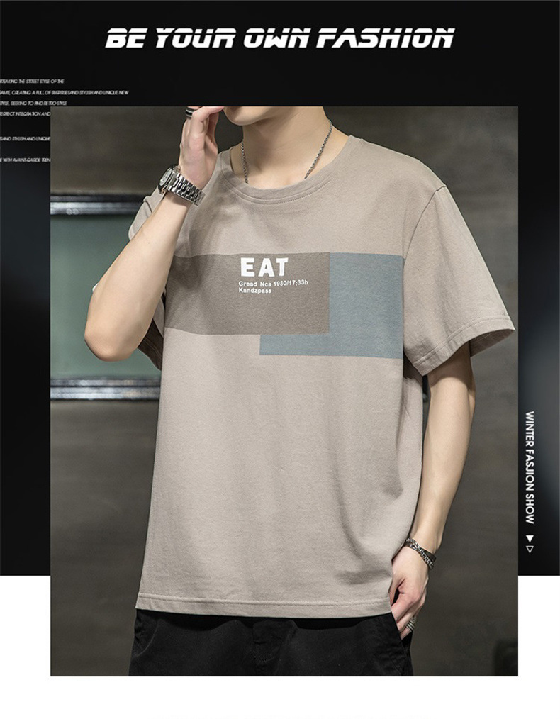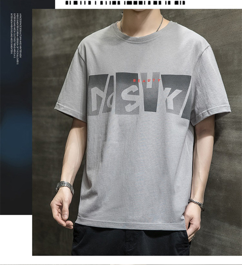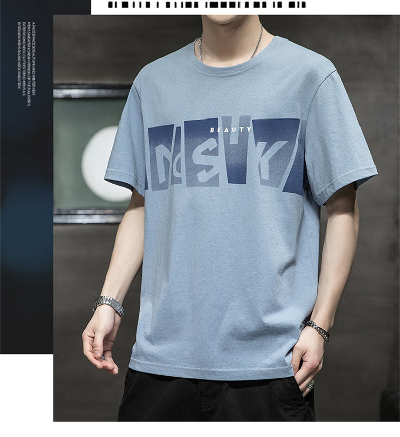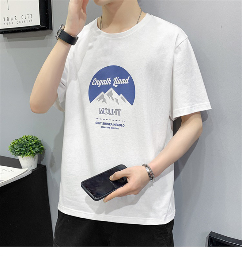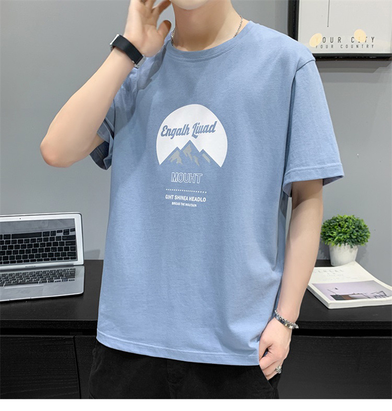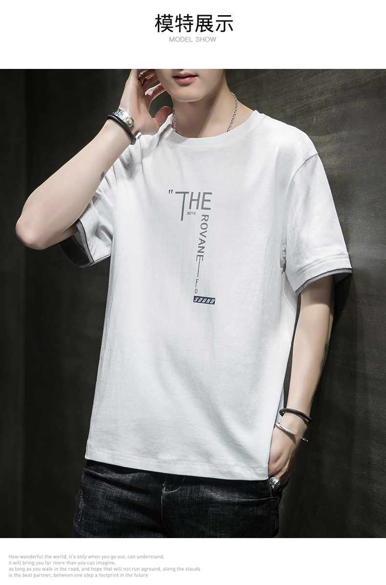 Short-sleeved T-shirt for men, summer ins trendy brand, loose men's summer wear, pure cotton men's round-neck half-sleeved top