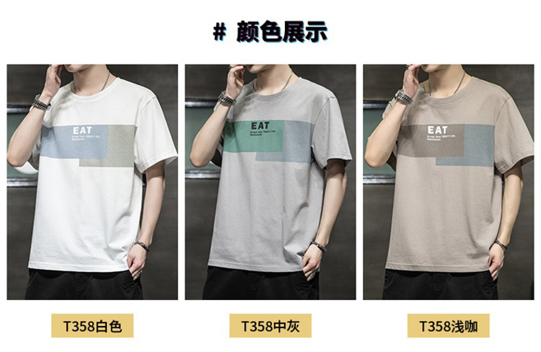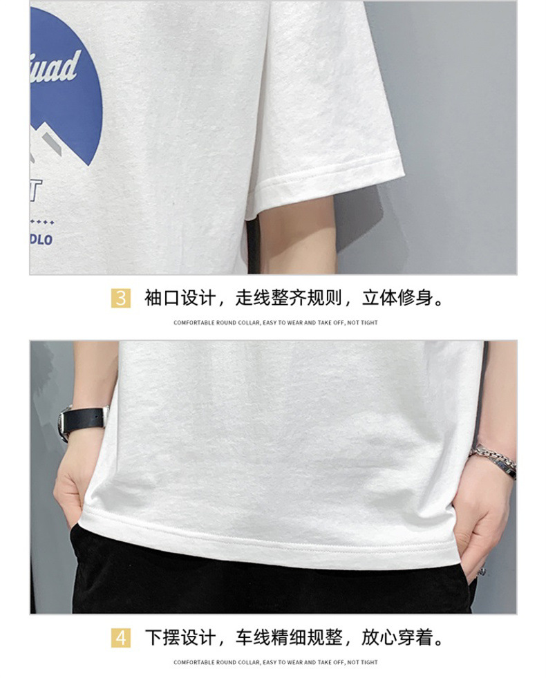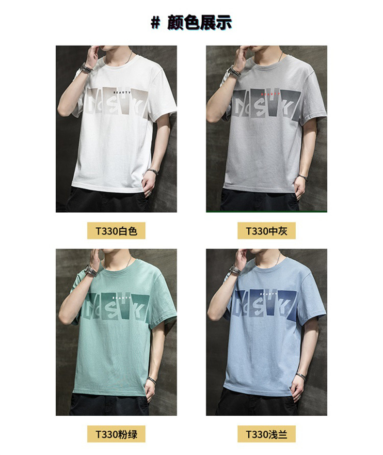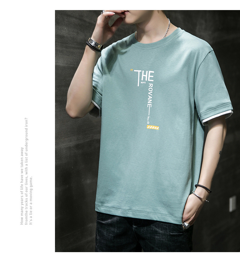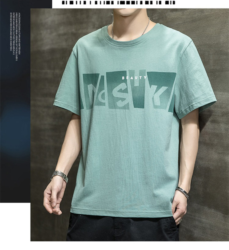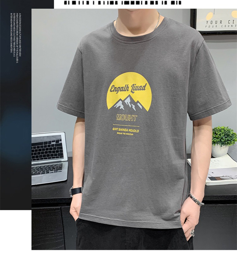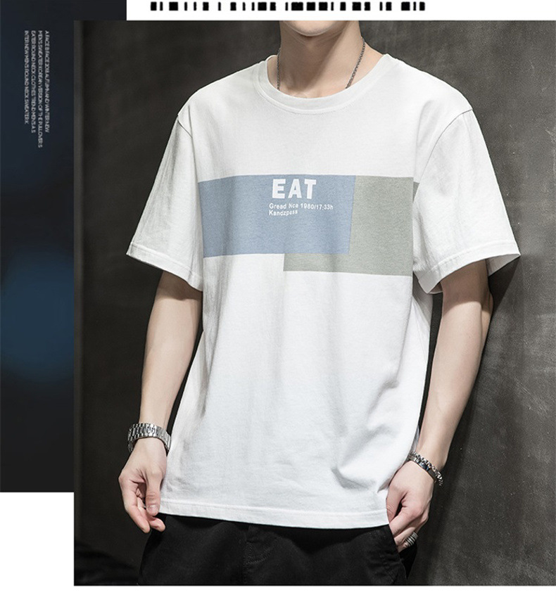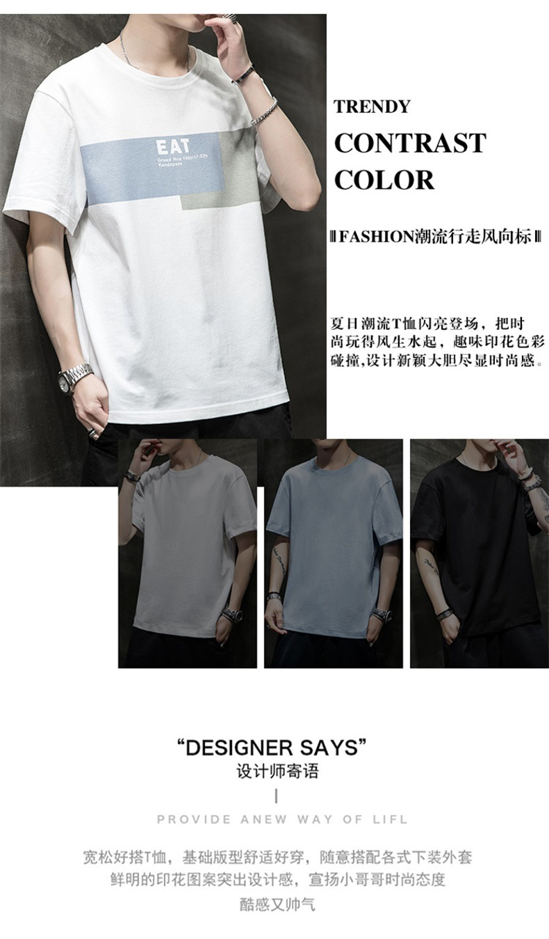 Short-sleeved T-shirt for men, summer ins trendy brand, loose men's summer wear, pure cotton men's round-neck half-sleeved top