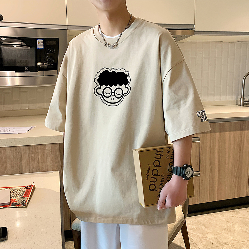 Short-sleeved T-shirt, men's summer wear, loose round-neck trendy printed top, ins Hong Kong-style casual student half-sleeved T-shirt